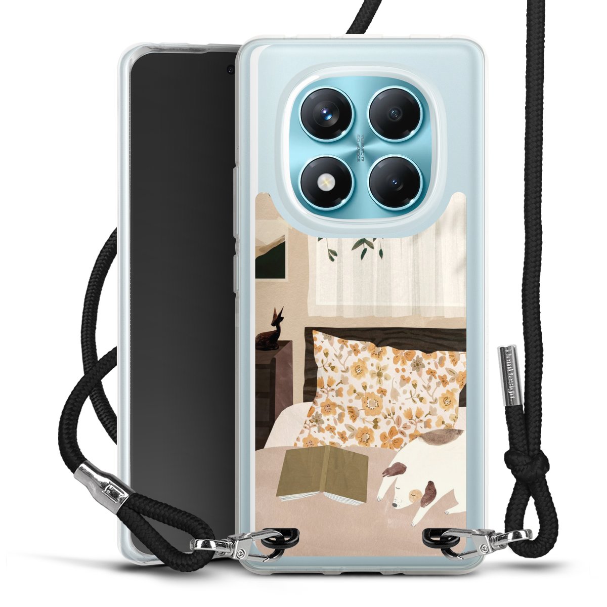 Keep your phone handy at all times, thanks to the flexible silicone case with a textile strap.