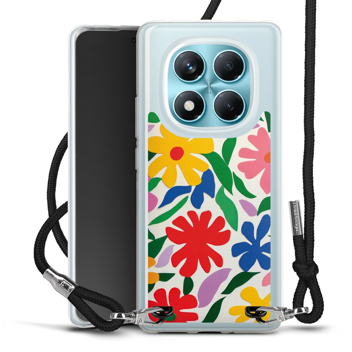 Keep your phone handy at all times, thanks to the flexible silicone case with a textile strap.