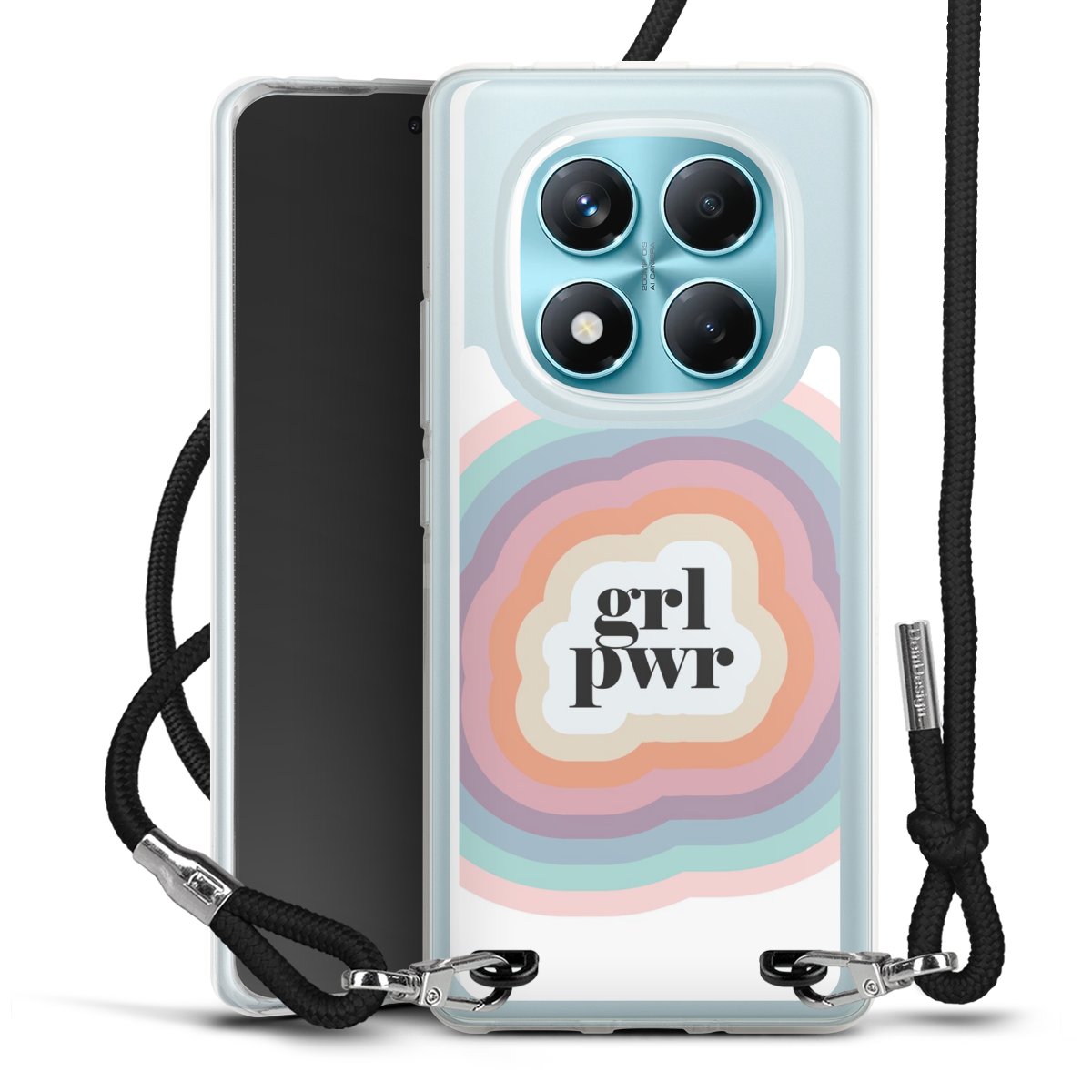 Keep your phone handy at all times, thanks to the flexible silicone case with a textile strap.