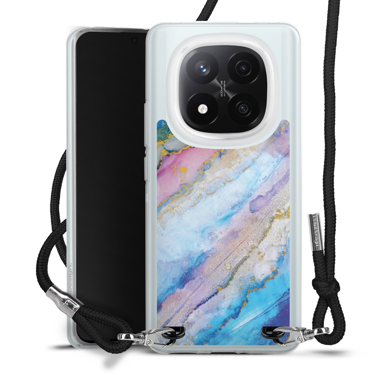 Keep your phone handy at all times, thanks to the flexible silicone case with a textile strap.