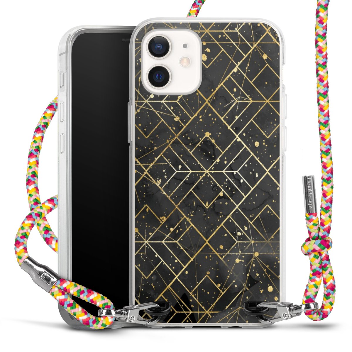 The flexible case is made from a highquality TPU material (thermoplastic Polyurethan). Thanks to its longlasting and break resistant characterisitcs, the case is flexible yet consistent in form and has a great grip and feel. The textile strap made from Polyester gives a chic yet casual accent allowing you to carry your phone like a bag or necklace - a practical gadget perfect for your next adventure. The textile strap is about 1.70 meters long and the length can easily be adjusted through the knots. Our Carry Case is available in Colourful, Mint-Camouflage, Very-Berry, Sahara-Sand and Sparkling-Neon. The ends of the textile strap are covered with metallic end caps to protect them against fraying.