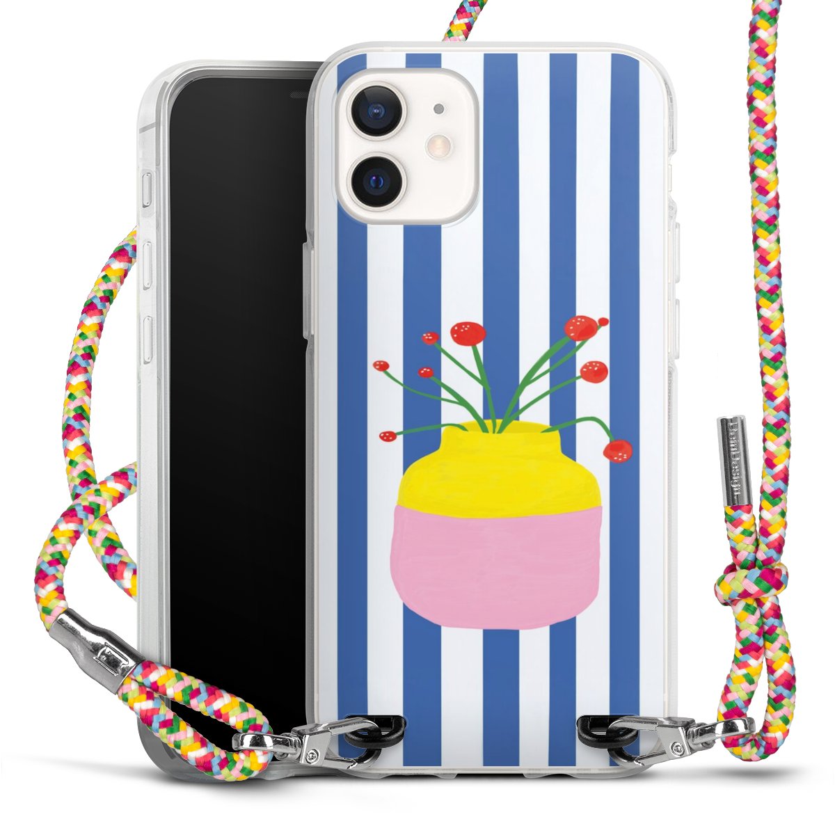 The flexible case is made from a highquality TPU material (thermoplastic Polyurethan). Thanks to its longlasting and break resistant characterisitcs, the case is flexible yet consistent in form and has a great grip and feel. The textile strap made from Polyester gives a chic yet casual accent allowing you to carry your phone like a bag or necklace - a practical gadget perfect for your next adventure. The textile strap is about 1.70 meters long and the length can easily be adjusted through the knots. Our Carry Case is available in Colourful, Mint-Camouflage, Very-Berry, Sahara-Sand and Sparkling-Neon. The ends of the textile strap are covered with metallic end caps to protect them against fraying.