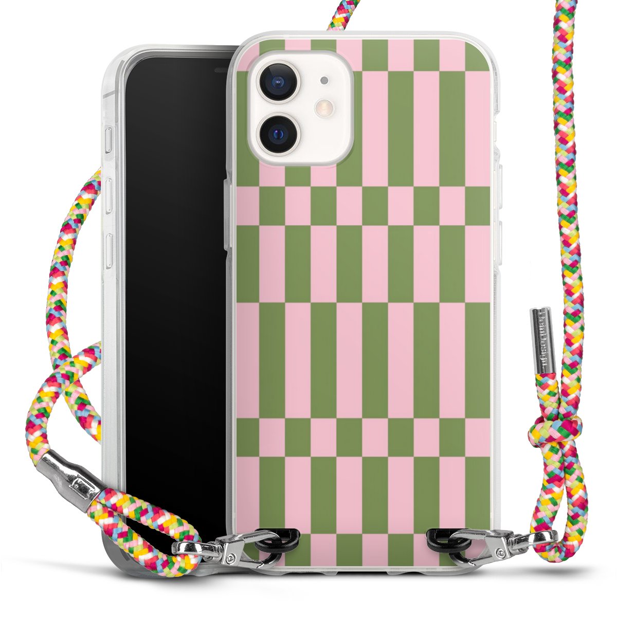 The flexible case is made from a highquality TPU material (thermoplastic Polyurethan). Thanks to its longlasting and break resistant characterisitcs, the case is flexible yet consistent in form and has a great grip and feel. The textile strap made from Polyester gives a chic yet casual accent allowing you to carry your phone like a bag or necklace - a practical gadget perfect for your next adventure. The textile strap is about 1.70 meters long and the length can easily be adjusted through the knots. Our Carry Case is available in Colourful, Mint-Camouflage, Very-Berry, Sahara-Sand and Sparkling-Neon. The ends of the textile strap are covered with metallic end caps to protect them against fraying.