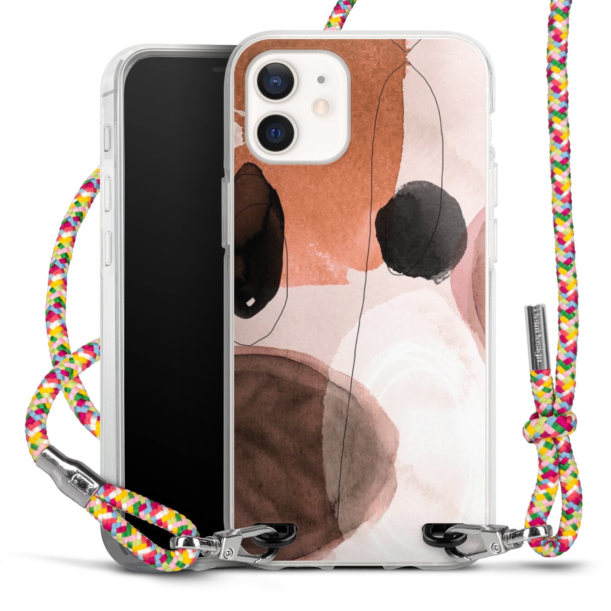 The flexible case is made from a highquality TPU material (thermoplastic Polyurethan). Thanks to its longlasting and break resistant characterisitcs, the case is flexible yet consistent in form and has a great grip and feel. The textile strap made from Polyester gives a chic yet casual accent allowing you to carry your phone like a bag or necklace - a practical gadget perfect for your next adventure. The textile strap is about 1.70 meters long and the length can easily be adjusted through the knots. Our Carry Case is available in Colourful, Mint-Camouflage, Very-Berry, Sahara-Sand and Sparkling-Neon. The ends of the textile strap are covered with metallic end caps to protect them against fraying.