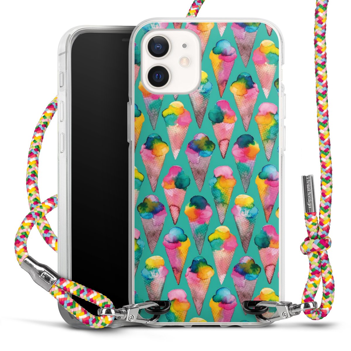 The flexible case is made from a highquality TPU material (thermoplastic Polyurethan). Thanks to its longlasting and break resistant characterisitcs, the case is flexible yet consistent in form and has a great grip and feel. The textile strap made from Polyester gives a chic yet casual accent allowing you to carry your phone like a bag or necklace - a practical gadget perfect for your next adventure. The textile strap is about 1.70 meters long and the length can easily be adjusted through the knots. Our Carry Case is available in Colourful, Mint-Camouflage, Very-Berry, Sahara-Sand and Sparkling-Neon. The ends of the textile strap are covered with metallic end caps to protect them against fraying.