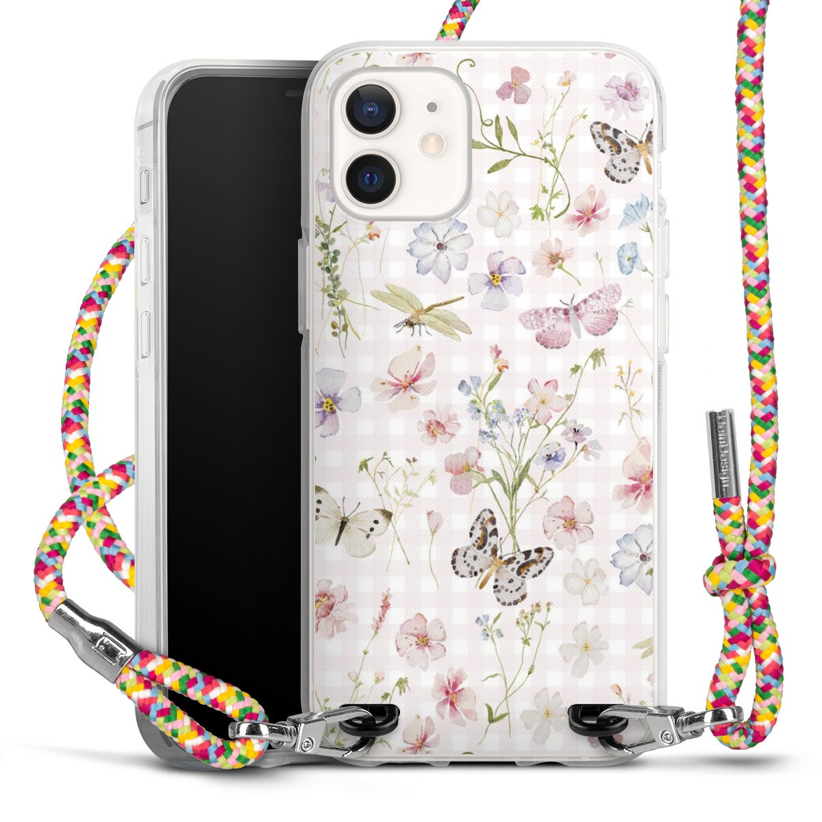 The flexible case is made from a highquality TPU material (thermoplastic Polyurethan). Thanks to its longlasting and break resistant characterisitcs, the case is flexible yet consistent in form and has a great grip and feel. The textile strap made from Polyester gives a chic yet casual accent allowing you to carry your phone like a bag or necklace - a practical gadget perfect for your next adventure. The textile strap is about 1.70 meters long and the length can easily be adjusted through the knots. Our Carry Case is available in Colourful, Mint-Camouflage, Very-Berry, Sahara-Sand and Sparkling-Neon. The ends of the textile strap are covered with metallic end caps to protect them against fraying.