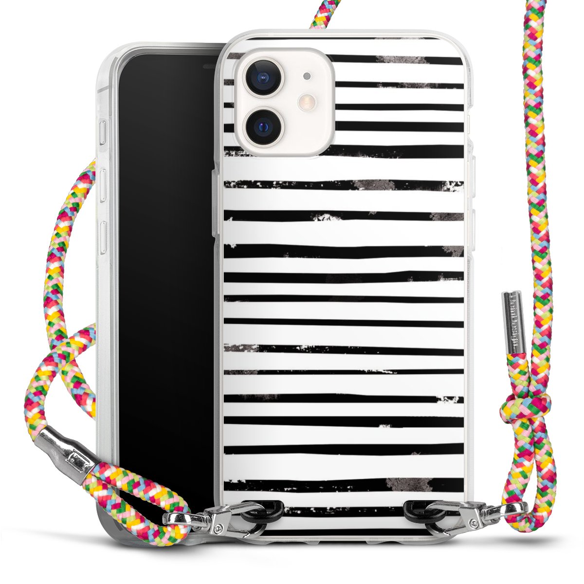 The flexible case is made from a highquality TPU material (thermoplastic Polyurethan). Thanks to its longlasting and break resistant characterisitcs, the case is flexible yet consistent in form and has a great grip and feel. The textile strap made from Polyester gives a chic yet casual accent allowing you to carry your phone like a bag or necklace - a practical gadget perfect for your next adventure. The textile strap is about 1.70 meters long and the length can easily be adjusted through the knots. Our Carry Case is available in Colourful, Mint-Camouflage, Very-Berry, Sahara-Sand and Sparkling-Neon. The ends of the textile strap are covered with metallic end caps to protect them against fraying.