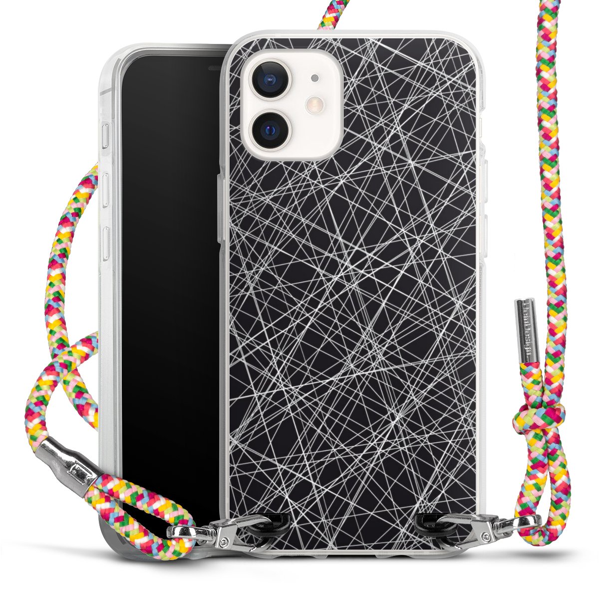 The flexible case is made from a highquality TPU material (thermoplastic Polyurethan). Thanks to its longlasting and break resistant characterisitcs, the case is flexible yet consistent in form and has a great grip and feel. The textile strap made from Polyester gives a chic yet casual accent allowing you to carry your phone like a bag or necklace - a practical gadget perfect for your next adventure. The textile strap is about 1.70 meters long and the length can easily be adjusted through the knots. Our Carry Case is available in Colourful, Mint-Camouflage, Very-Berry, Sahara-Sand and Sparkling-Neon. The ends of the textile strap are covered with metallic end caps to protect them against fraying.