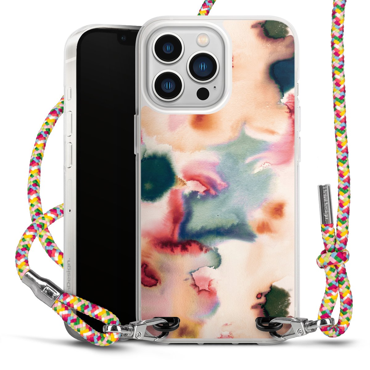 The flexible case is made from a highquality TPU material (thermoplastic Polyurethan). Thanks to its longlasting and break resistant characterisitcs, the case is flexible yet consistent in form and has a great grip and feel. The textile strap made from Polyester gives a chic yet casual accent allowing you to carry your phone like a bag or necklace - a practical gadget perfect for your next adventure. The textile strap is about 1.70 meters long and the length can easily be adjusted through the knots. Our Carry Case is available in Colourful, Mint-Camouflage, Very-Berry, Sahara-Sand and Sparkling-Neon. The ends of the textile strap are covered with metallic end caps to protect them against fraying.