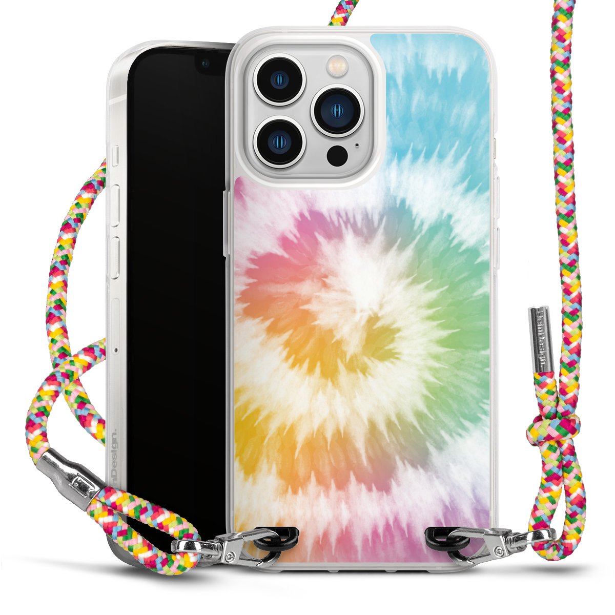 The flexible case is made from a highquality TPU material (thermoplastic Polyurethan). Thanks to its longlasting and break resistant characterisitcs, the case is flexible yet consistent in form and has a great grip and feel. The textile strap made from Polyester gives a chic yet casual accent allowing you to carry your phone like a bag or necklace - a practical gadget perfect for your next adventure. The textile strap is about 1.70 meters long and the length can easily be adjusted through the knots. Our Carry Case is available in Colourful, Mint-Camouflage, Very-Berry, Sahara-Sand and Sparkling-Neon. The ends of the textile strap are covered with metallic end caps to protect them against fraying.