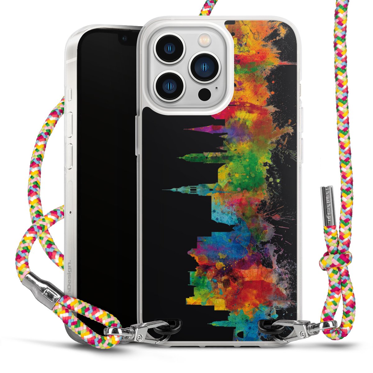 The flexible case is made from a highquality TPU material (thermoplastic Polyurethan). Thanks to its longlasting and break resistant characterisitcs, the case is flexible yet consistent in form and has a great grip and feel. The textile strap made from Polyester gives a chic yet casual accent allowing you to carry your phone like a bag or necklace - a practical gadget perfect for your next adventure. The textile strap is about 1.70 meters long and the length can easily be adjusted through the knots. Our Carry Case is available in Colourful, Mint-Camouflage, Very-Berry, Sahara-Sand and Sparkling-Neon. The ends of the textile strap are covered with metallic end caps to protect them against fraying.