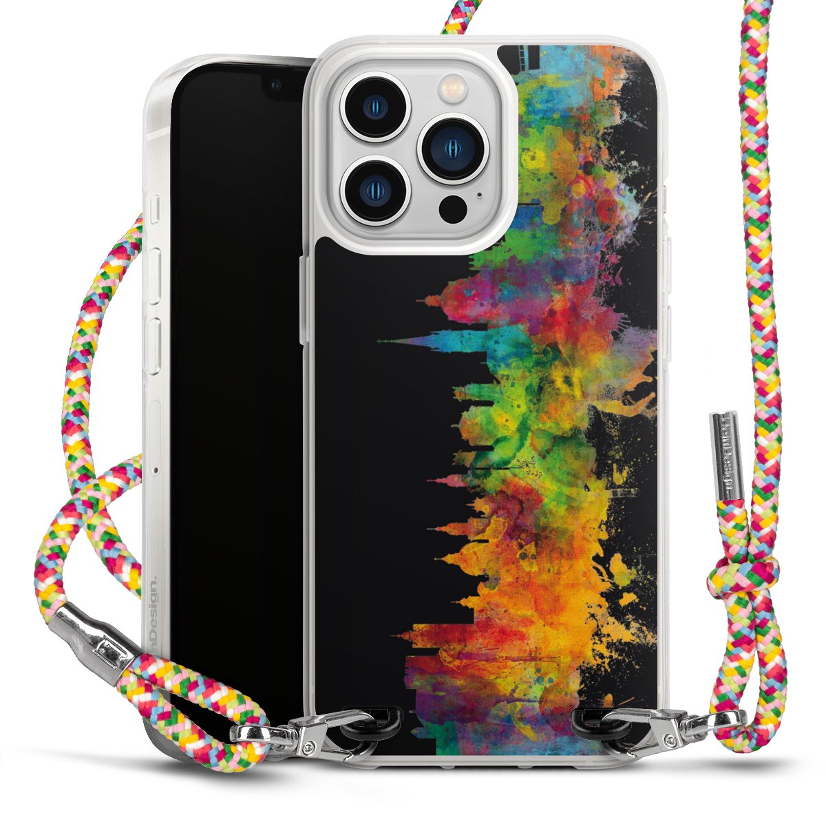 The flexible case is made from a highquality TPU material (thermoplastic Polyurethan). Thanks to its longlasting and break resistant characterisitcs, the case is flexible yet consistent in form and has a great grip and feel. The textile strap made from Polyester gives a chic yet casual accent allowing you to carry your phone like a bag or necklace - a practical gadget perfect for your next adventure. The textile strap is about 1.70 meters long and the length can easily be adjusted through the knots. Our Carry Case is available in Colourful, Mint-Camouflage, Very-Berry, Sahara-Sand and Sparkling-Neon. The ends of the textile strap are covered with metallic end caps to protect them against fraying.