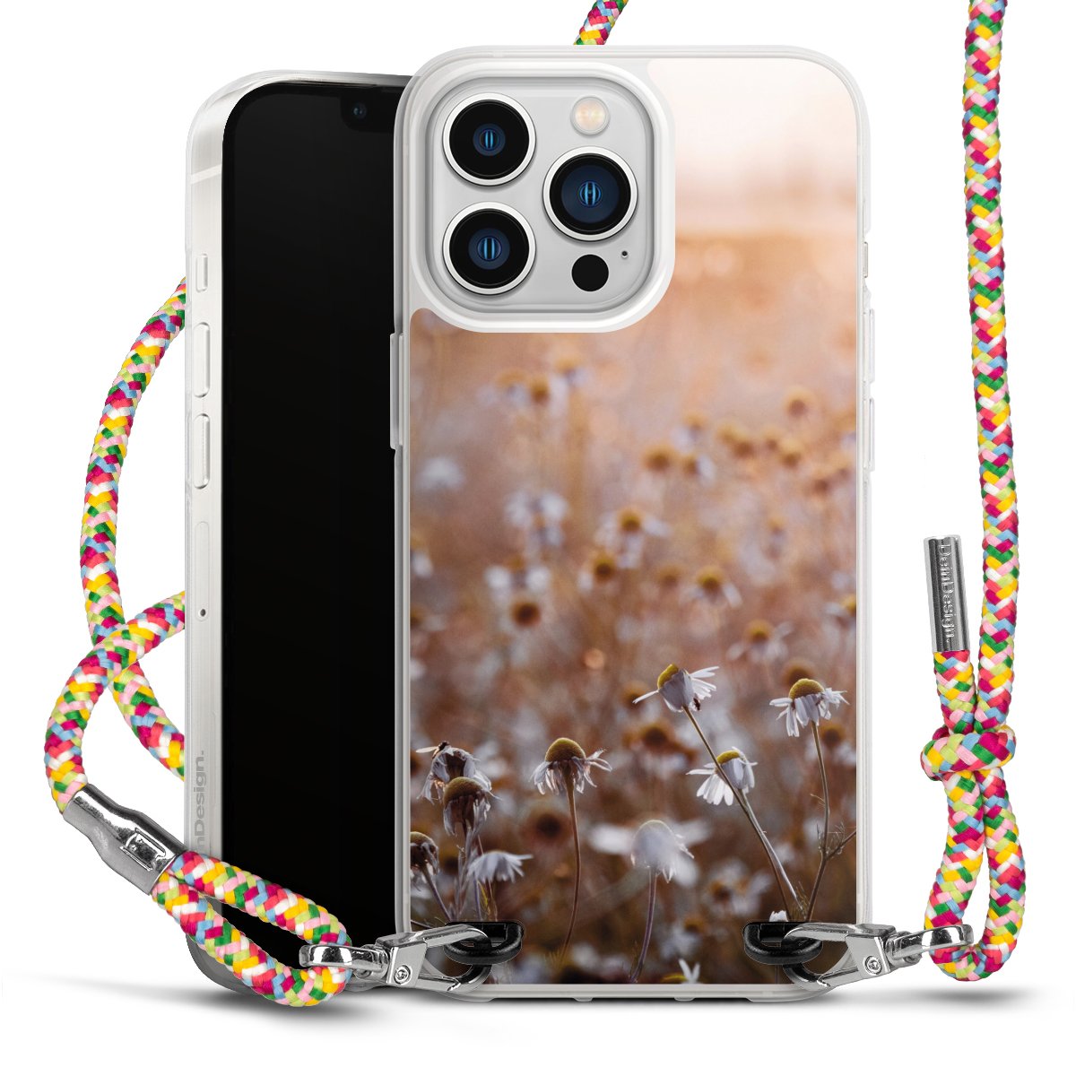 The flexible case is made from a highquality TPU material (thermoplastic Polyurethan). Thanks to its longlasting and break resistant characterisitcs, the case is flexible yet consistent in form and has a great grip and feel. The textile strap made from Polyester gives a chic yet casual accent allowing you to carry your phone like a bag or necklace - a practical gadget perfect for your next adventure. The textile strap is about 1.70 meters long and the length can easily be adjusted through the knots. Our Carry Case is available in Colourful, Mint-Camouflage, Very-Berry, Sahara-Sand and Sparkling-Neon. The ends of the textile strap are covered with metallic end caps to protect them against fraying.