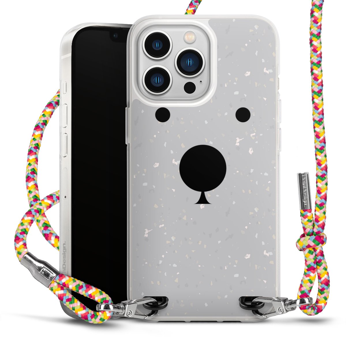 The flexible case is made from a highquality TPU material (thermoplastic Polyurethan). Thanks to its longlasting and break resistant characterisitcs, the case is flexible yet consistent in form and has a great grip and feel. The textile strap made from Polyester gives a chic yet casual accent allowing you to carry your phone like a bag or necklace - a practical gadget perfect for your next adventure. The textile strap is about 1.70 meters long and the length can easily be adjusted through the knots. Our Carry Case is available in Colourful, Mint-Camouflage, Very-Berry, Sahara-Sand and Sparkling-Neon. The ends of the textile strap are covered with metallic end caps to protect them against fraying.