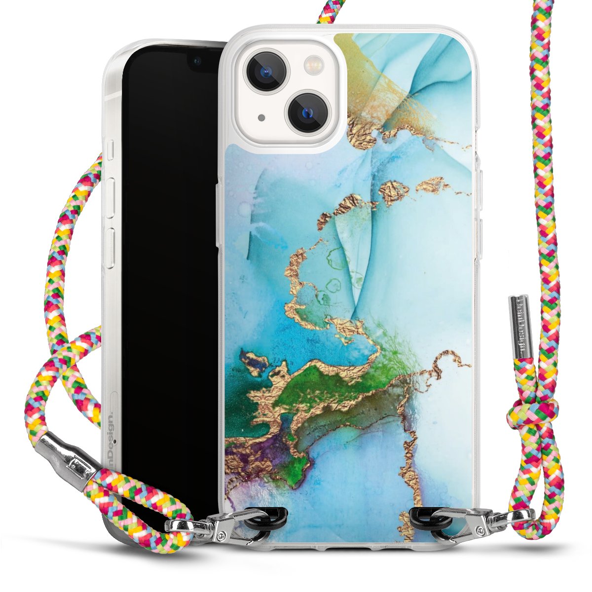 The flexible case is made from a highquality TPU material (thermoplastic Polyurethan). Thanks to its longlasting and break resistant characterisitcs, the case is flexible yet consistent in form and has a great grip and feel. The textile strap made from Polyester gives a chic yet casual accent allowing you to carry your phone like a bag or necklace - a practical gadget perfect for your next adventure. The textile strap is about 1.70 meters long and the length can easily be adjusted through the knots. Our Carry Case is available in Colourful, Mint-Camouflage, Very-Berry, Sahara-Sand and Sparkling-Neon. The ends of the textile strap are covered with metallic end caps to protect them against fraying.