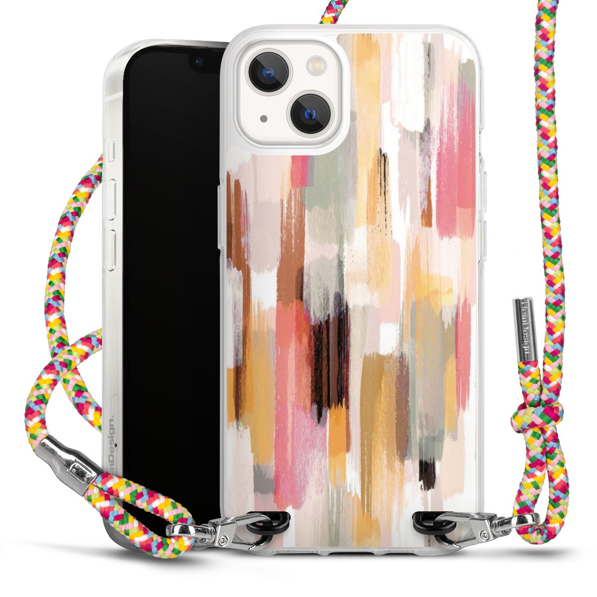 The flexible case is made from a highquality TPU material (thermoplastic Polyurethan). Thanks to its longlasting and break resistant characterisitcs, the case is flexible yet consistent in form and has a great grip and feel. The textile strap made from Polyester gives a chic yet casual accent allowing you to carry your phone like a bag or necklace - a practical gadget perfect for your next adventure. The textile strap is about 1.70 meters long and the length can easily be adjusted through the knots. Our Carry Case is available in Colourful, Mint-Camouflage, Very-Berry, Sahara-Sand and Sparkling-Neon. The ends of the textile strap are covered with metallic end caps to protect them against fraying.