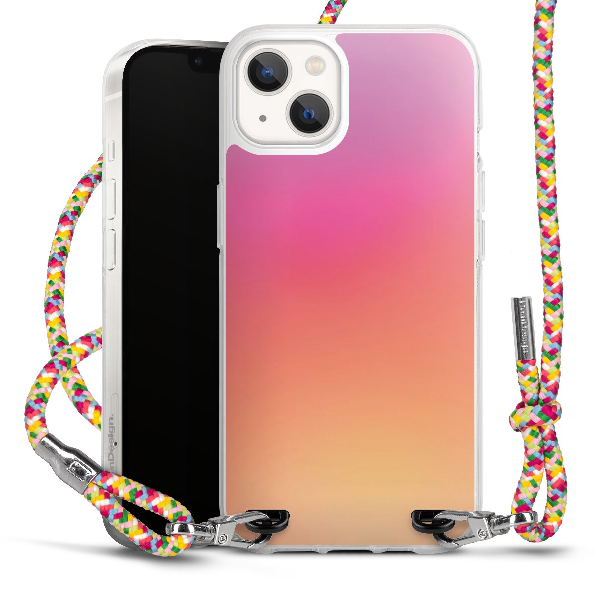 The flexible case is made from a highquality TPU material (thermoplastic Polyurethan). Thanks to its longlasting and break resistant characterisitcs, the case is flexible yet consistent in form and has a great grip and feel. The textile strap made from Polyester gives a chic yet casual accent allowing you to carry your phone like a bag or necklace - a practical gadget perfect for your next adventure. The textile strap is about 1.70 meters long and the length can easily be adjusted through the knots. Our Carry Case is available in Colourful, Mint-Camouflage, Very-Berry, Sahara-Sand and Sparkling-Neon. The ends of the textile strap are covered with metallic end caps to protect them against fraying.