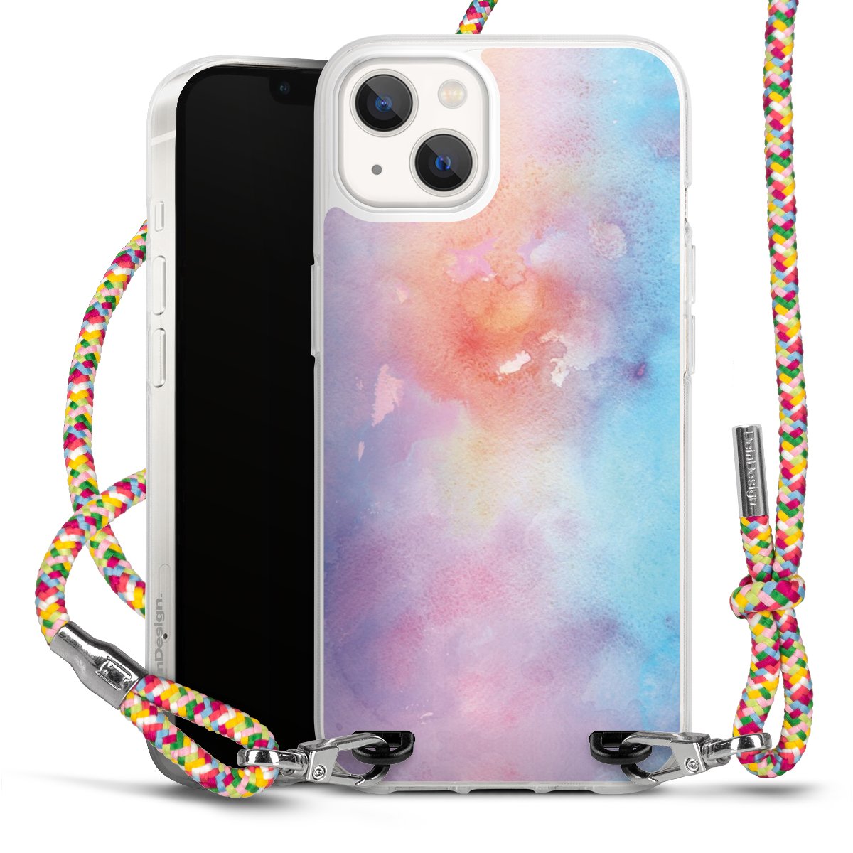 The flexible case is made from a highquality TPU material (thermoplastic Polyurethan). Thanks to its longlasting and break resistant characterisitcs, the case is flexible yet consistent in form and has a great grip and feel. The textile strap made from Polyester gives a chic yet casual accent allowing you to carry your phone like a bag or necklace - a practical gadget perfect for your next adventure. The textile strap is about 1.70 meters long and the length can easily be adjusted through the knots. Our Carry Case is available in Colourful, Mint-Camouflage, Very-Berry, Sahara-Sand and Sparkling-Neon. The ends of the textile strap are covered with metallic end caps to protect them against fraying.