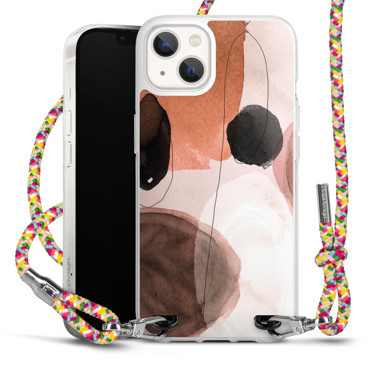 The flexible case is made from a highquality TPU material (thermoplastic Polyurethan). Thanks to its longlasting and break resistant characterisitcs, the case is flexible yet consistent in form and has a great grip and feel. The textile strap made from Polyester gives a chic yet casual accent allowing you to carry your phone like a bag or necklace - a practical gadget perfect for your next adventure. The textile strap is about 1.70 meters long and the length can easily be adjusted through the knots. Our Carry Case is available in Colourful, Mint-Camouflage, Very-Berry, Sahara-Sand and Sparkling-Neon. The ends of the textile strap are covered with metallic end caps to protect them against fraying.