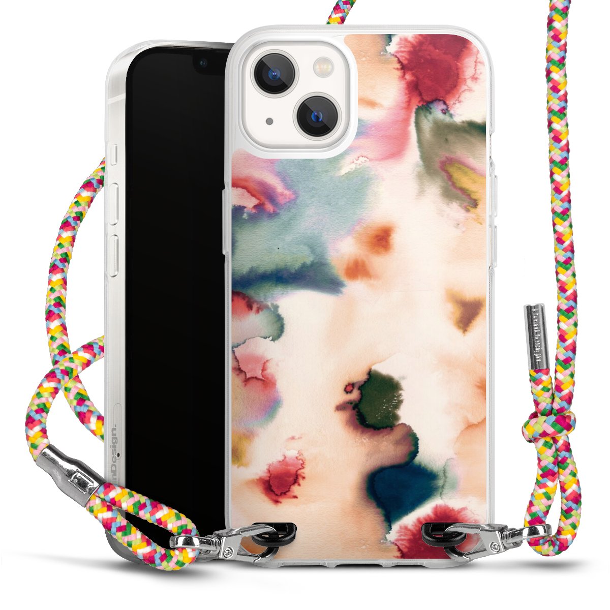 The flexible case is made from a highquality TPU material (thermoplastic Polyurethan). Thanks to its longlasting and break resistant characterisitcs, the case is flexible yet consistent in form and has a great grip and feel. The textile strap made from Polyester gives a chic yet casual accent allowing you to carry your phone like a bag or necklace - a practical gadget perfect for your next adventure. The textile strap is about 1.70 meters long and the length can easily be adjusted through the knots. Our Carry Case is available in Colourful, Mint-Camouflage, Very-Berry, Sahara-Sand and Sparkling-Neon. The ends of the textile strap are covered with metallic end caps to protect them against fraying.