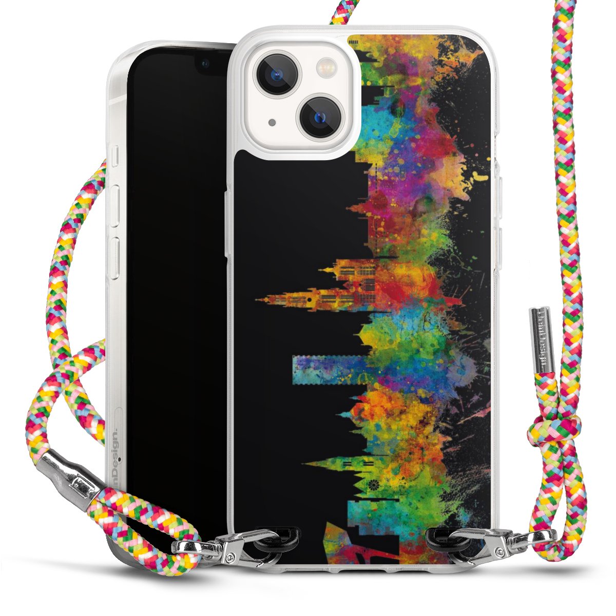 The flexible case is made from a highquality TPU material (thermoplastic Polyurethan). Thanks to its longlasting and break resistant characterisitcs, the case is flexible yet consistent in form and has a great grip and feel. The textile strap made from Polyester gives a chic yet casual accent allowing you to carry your phone like a bag or necklace - a practical gadget perfect for your next adventure. The textile strap is about 1.70 meters long and the length can easily be adjusted through the knots. Our Carry Case is available in Colourful, Mint-Camouflage, Very-Berry, Sahara-Sand and Sparkling-Neon. The ends of the textile strap are covered with metallic end caps to protect them against fraying.