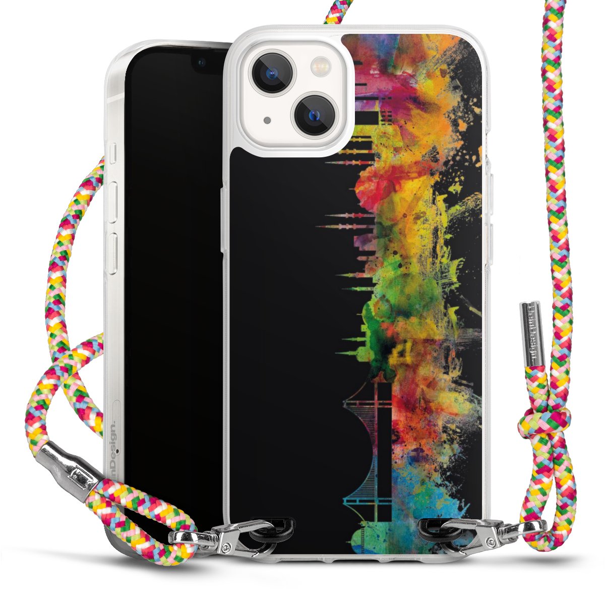 The flexible case is made from a highquality TPU material (thermoplastic Polyurethan). Thanks to its longlasting and break resistant characterisitcs, the case is flexible yet consistent in form and has a great grip and feel. The textile strap made from Polyester gives a chic yet casual accent allowing you to carry your phone like a bag or necklace - a practical gadget perfect for your next adventure. The textile strap is about 1.70 meters long and the length can easily be adjusted through the knots. Our Carry Case is available in Colourful, Mint-Camouflage, Very-Berry, Sahara-Sand and Sparkling-Neon. The ends of the textile strap are covered with metallic end caps to protect them against fraying.