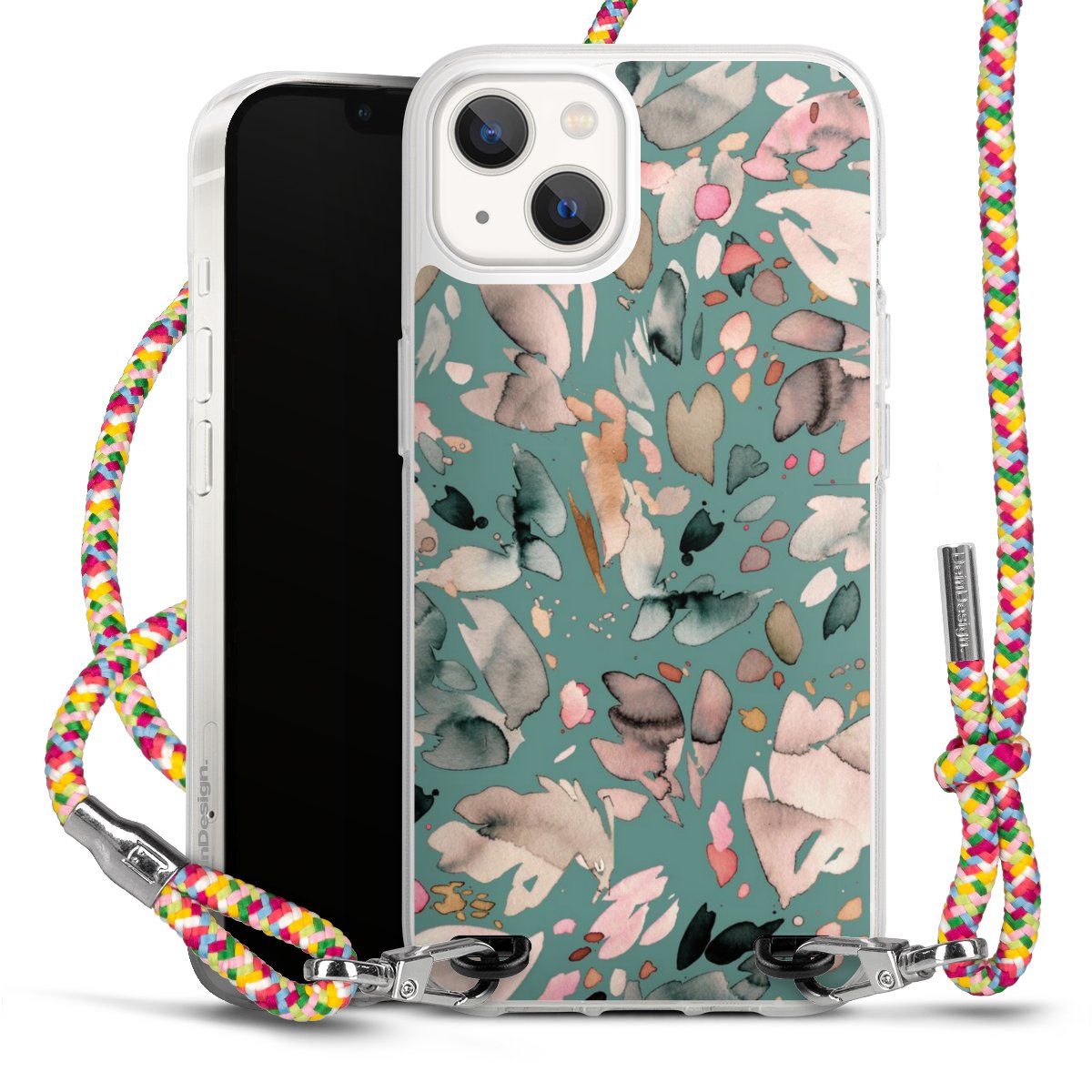 The flexible case is made from a highquality TPU material (thermoplastic Polyurethan). Thanks to its longlasting and break resistant characterisitcs, the case is flexible yet consistent in form and has a great grip and feel. The textile strap made from Polyester gives a chic yet casual accent allowing you to carry your phone like a bag or necklace - a practical gadget perfect for your next adventure. The textile strap is about 1.70 meters long and the length can easily be adjusted through the knots. Our Carry Case is available in Colourful, Mint-Camouflage, Very-Berry, Sahara-Sand and Sparkling-Neon. The ends of the textile strap are covered with metallic end caps to protect them against fraying.