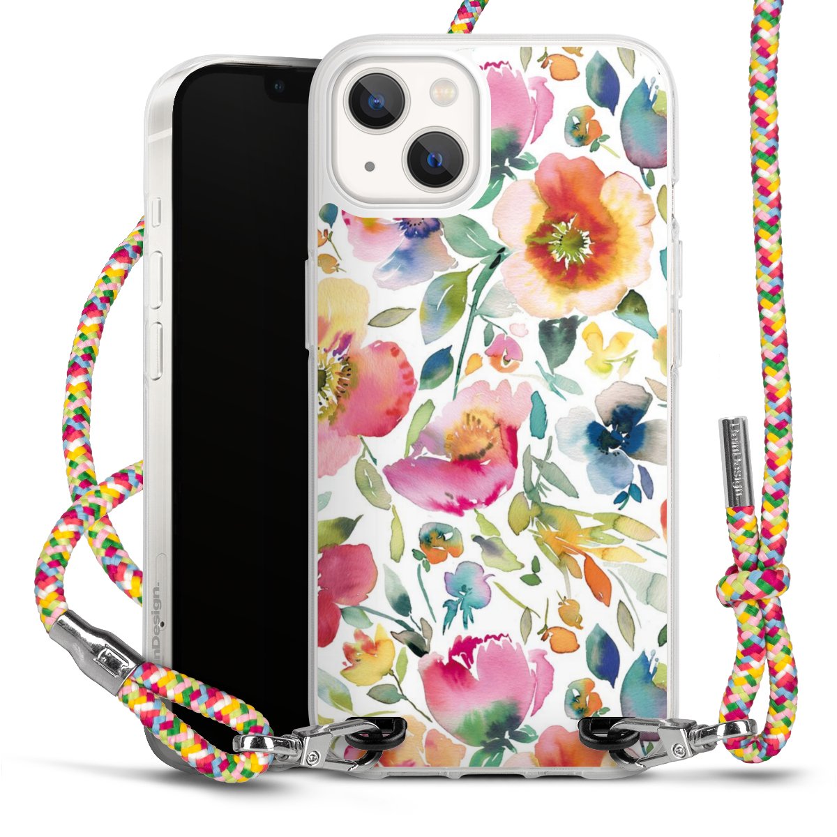 The flexible case is made from a highquality TPU material (thermoplastic Polyurethan). Thanks to its longlasting and break resistant characterisitcs, the case is flexible yet consistent in form and has a great grip and feel. The textile strap made from Polyester gives a chic yet casual accent allowing you to carry your phone like a bag or necklace - a practical gadget perfect for your next adventure. The textile strap is about 1.70 meters long and the length can easily be adjusted through the knots. Our Carry Case is available in Colourful, Mint-Camouflage, Very-Berry, Sahara-Sand and Sparkling-Neon. The ends of the textile strap are covered with metallic end caps to protect them against fraying.