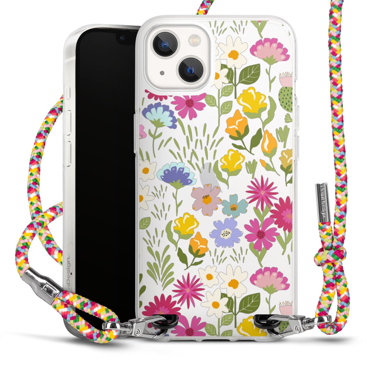 The flexible case is made from a highquality TPU material (thermoplastic Polyurethan). Thanks to its longlasting and break resistant characterisitcs, the case is flexible yet consistent in form and has a great grip and feel. The textile strap made from Polyester gives a chic yet casual accent allowing you to carry your phone like a bag or necklace - a practical gadget perfect for your next adventure. The textile strap is about 1.70 meters long and the length can easily be adjusted through the knots. Our Carry Case is available in Colourful, Mint-Camouflage, Very-Berry, Sahara-Sand and Sparkling-Neon. The ends of the textile strap are covered with metallic end caps to protect them against fraying.