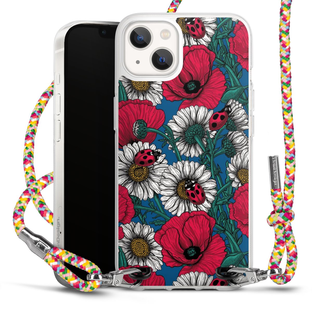 The flexible case is made from a highquality TPU material (thermoplastic Polyurethan). Thanks to its longlasting and break resistant characterisitcs, the case is flexible yet consistent in form and has a great grip and feel. The textile strap made from Polyester gives a chic yet casual accent allowing you to carry your phone like a bag or necklace - a practical gadget perfect for your next adventure. The textile strap is about 1.70 meters long and the length can easily be adjusted through the knots. Our Carry Case is available in Colourful, Mint-Camouflage, Very-Berry, Sahara-Sand and Sparkling-Neon. The ends of the textile strap are covered with metallic end caps to protect them against fraying.