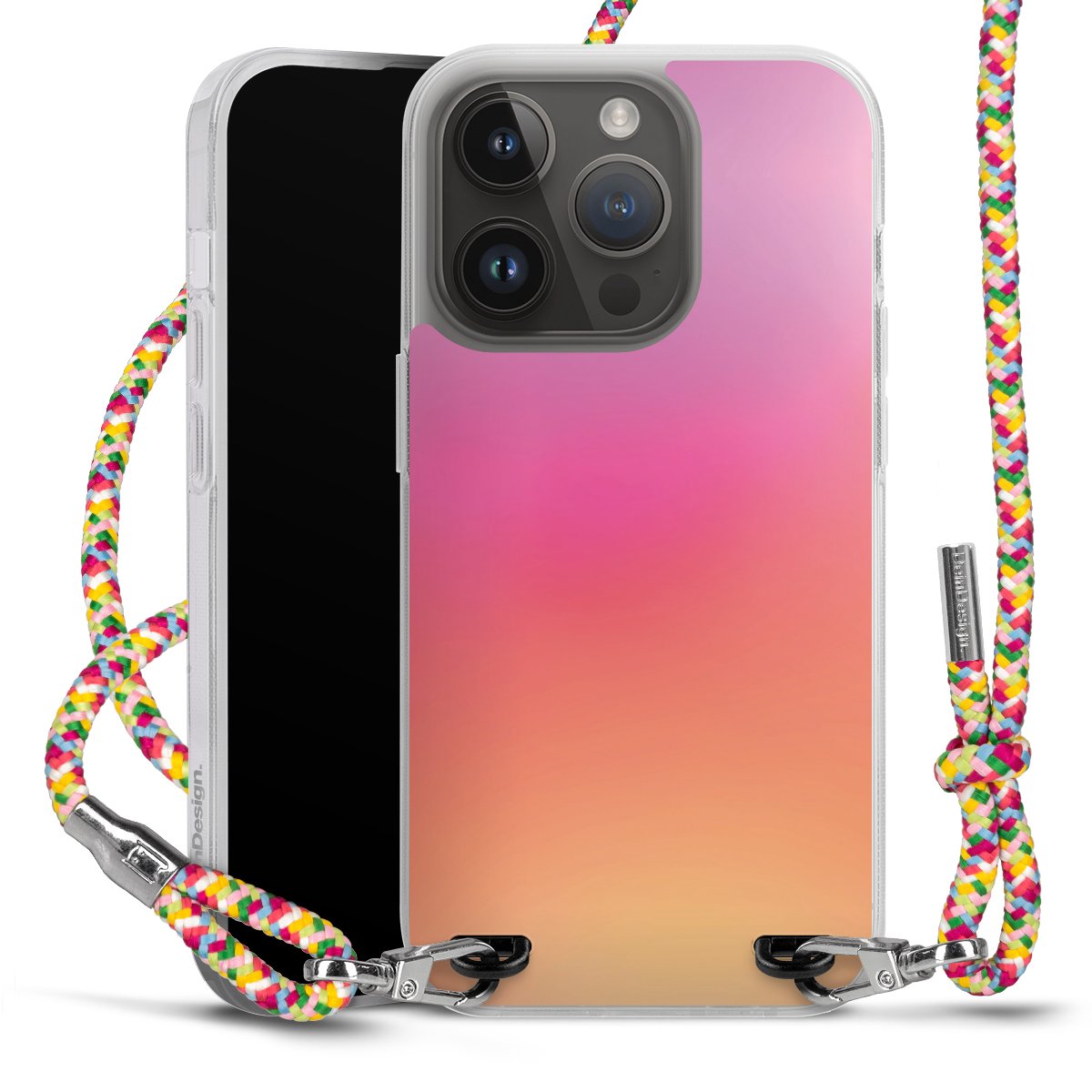 The flexible case is made from a highquality TPU material (thermoplastic Polyurethan). Thanks to its longlasting and break resistant characterisitcs, the case is flexible yet consistent in form and has a great grip and feel. The textile strap made from Polyester gives a chic yet casual accent allowing you to carry your phone like a bag or necklace - a practical gadget perfect for your next adventure. The textile strap is about 1.70 meters long and the length can easily be adjusted through the knots. Our Carry Case is available in Colourful, Mint-Camouflage, Very-Berry, Sahara-Sand and Sparkling-Neon. The ends of the textile strap are covered with metallic end caps to protect them against fraying.