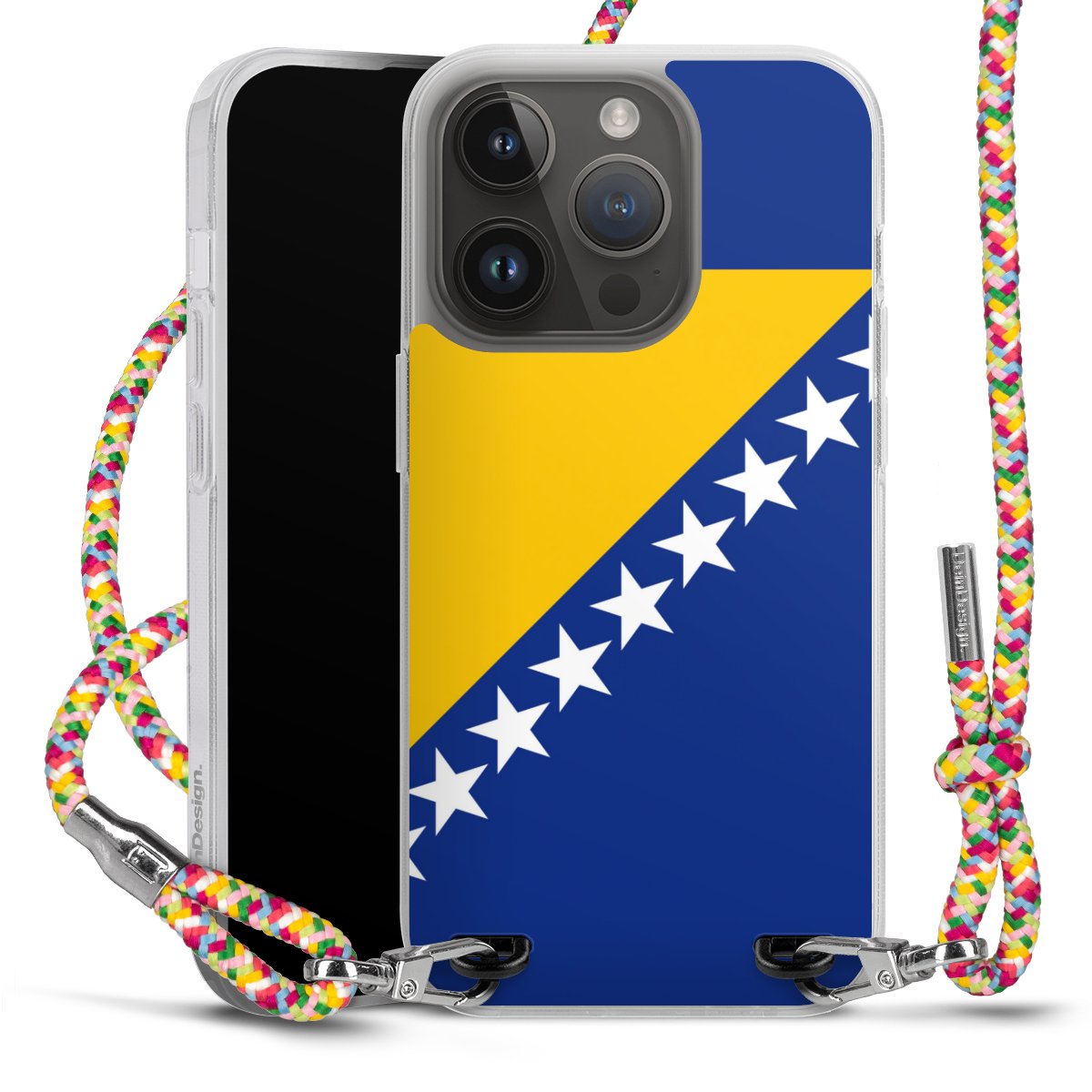 The flexible case is made from a highquality TPU material (thermoplastic Polyurethan). Thanks to its longlasting and break resistant characterisitcs, the case is flexible yet consistent in form and has a great grip and feel. The textile strap made from Polyester gives a chic yet casual accent allowing you to carry your phone like a bag or necklace - a practical gadget perfect for your next adventure. The textile strap is about 1.70 meters long and the length can easily be adjusted through the knots. Our Carry Case is available in Colourful, Mint-Camouflage, Very-Berry, Sahara-Sand and Sparkling-Neon. The ends of the textile strap are covered with metallic end caps to protect them against fraying.