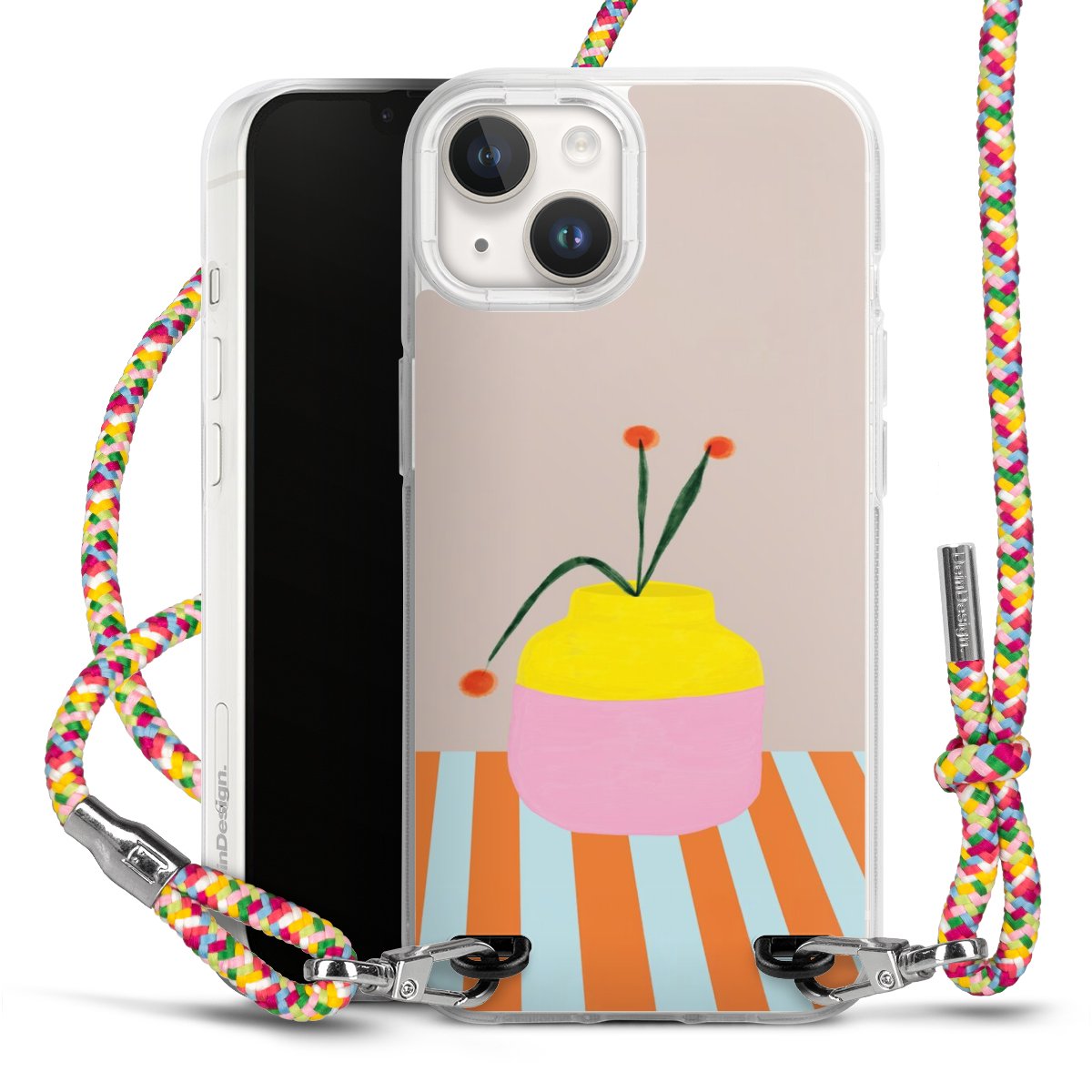 The flexible case is made from a highquality TPU material (thermoplastic Polyurethan). Thanks to its longlasting and break resistant characterisitcs, the case is flexible yet consistent in form and has a great grip and feel. The textile strap made from Polyester gives a chic yet casual accent allowing you to carry your phone like a bag or necklace - a practical gadget perfect for your next adventure. The textile strap is about 1.70 meters long and the length can easily be adjusted through the knots. Our Carry Case is available in Colourful, Mint-Camouflage, Very-Berry, Sahara-Sand and Sparkling-Neon. The ends of the textile strap are covered with metallic end caps to protect them against fraying.
