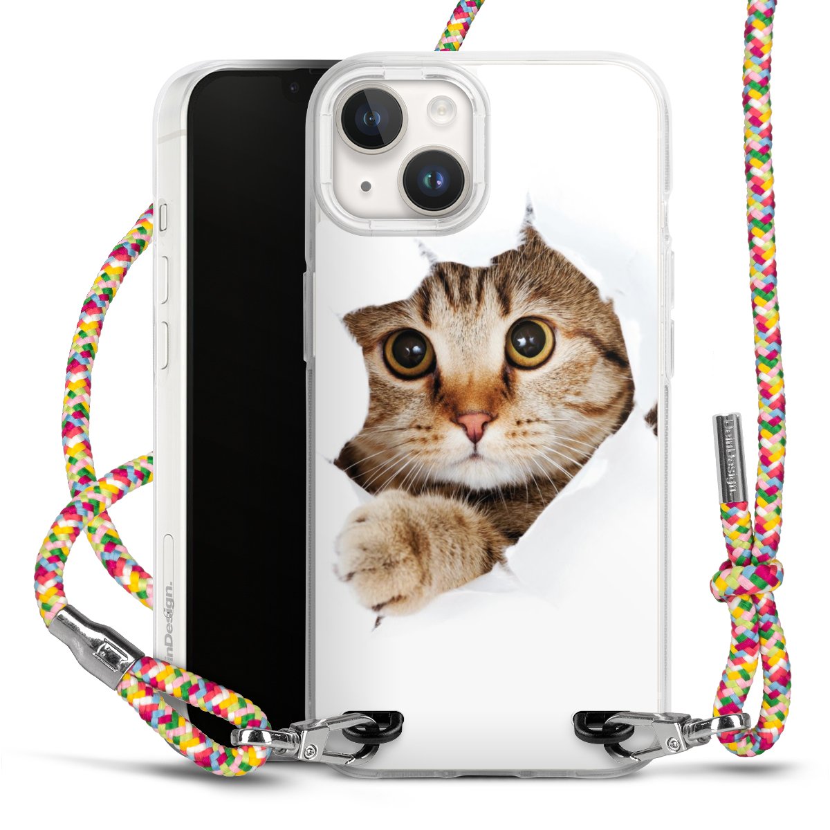 The flexible case is made from a highquality TPU material (thermoplastic Polyurethan). Thanks to its longlasting and break resistant characterisitcs, the case is flexible yet consistent in form and has a great grip and feel. The textile strap made from Polyester gives a chic yet casual accent allowing you to carry your phone like a bag or necklace - a practical gadget perfect for your next adventure. The textile strap is about 1.70 meters long and the length can easily be adjusted through the knots. Our Carry Case is available in Colourful, Mint-Camouflage, Very-Berry, Sahara-Sand and Sparkling-Neon. The ends of the textile strap are covered with metallic end caps to protect them against fraying.