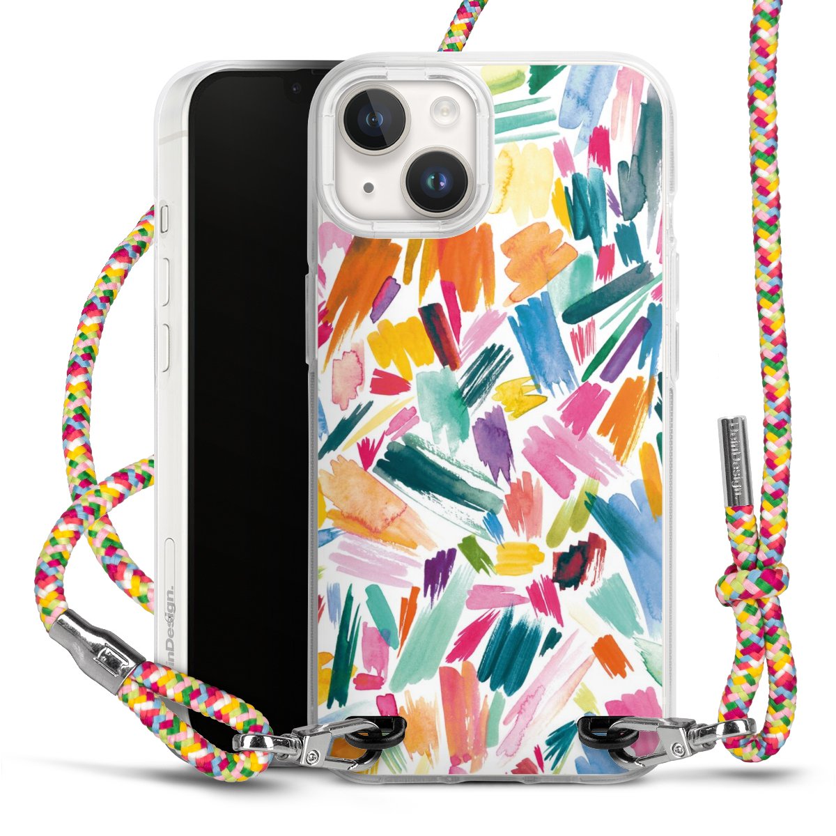 The flexible case is made from a highquality TPU material (thermoplastic Polyurethan). Thanks to its longlasting and break resistant characterisitcs, the case is flexible yet consistent in form and has a great grip and feel. The textile strap made from Polyester gives a chic yet casual accent allowing you to carry your phone like a bag or necklace - a practical gadget perfect for your next adventure. The textile strap is about 1.70 meters long and the length can easily be adjusted through the knots. Our Carry Case is available in Colourful, Mint-Camouflage, Very-Berry, Sahara-Sand and Sparkling-Neon. The ends of the textile strap are covered with metallic end caps to protect them against fraying.