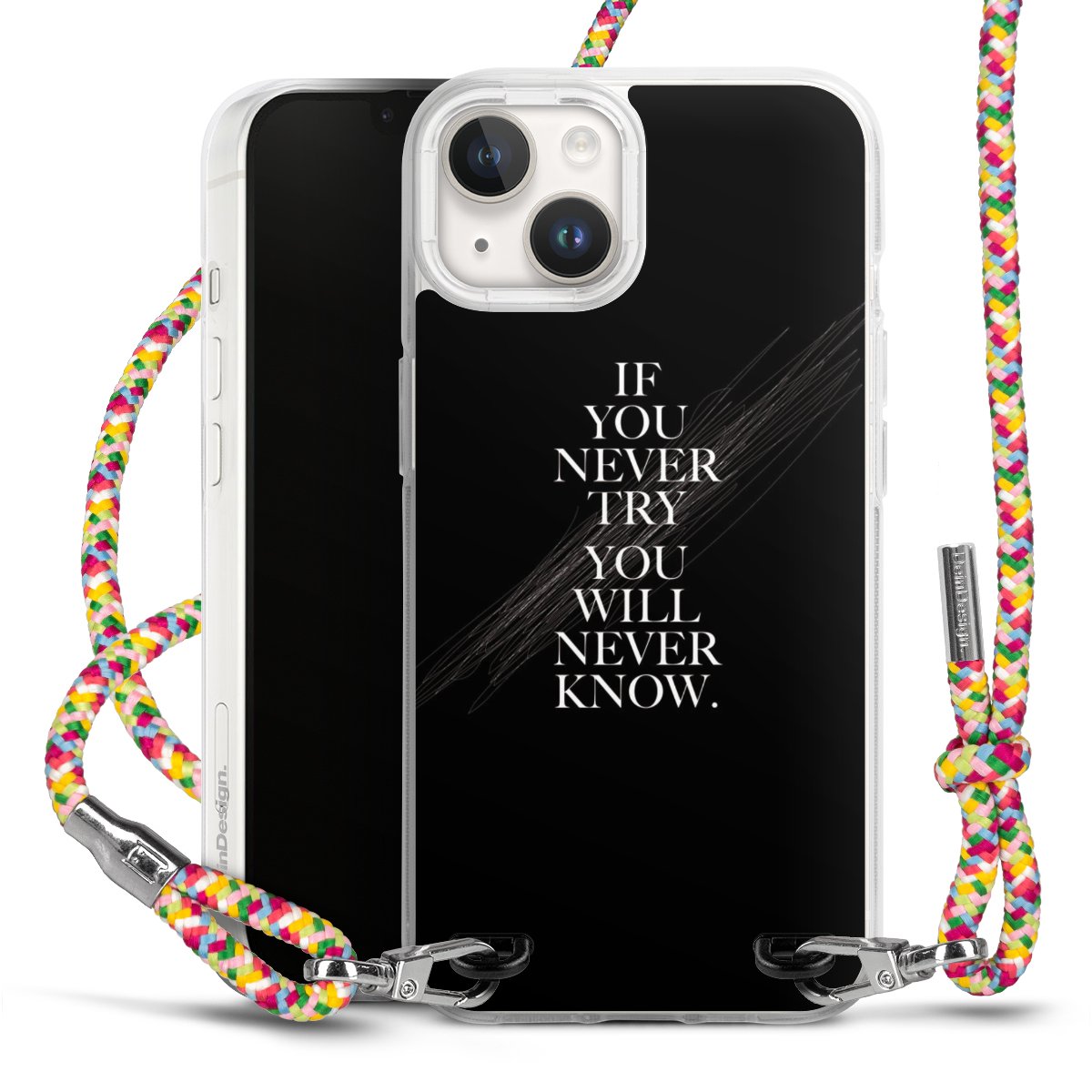 The flexible case is made from a highquality TPU material (thermoplastic Polyurethan). Thanks to its longlasting and break resistant characterisitcs, the case is flexible yet consistent in form and has a great grip and feel. The textile strap made from Polyester gives a chic yet casual accent allowing you to carry your phone like a bag or necklace - a practical gadget perfect for your next adventure. The textile strap is about 1.70 meters long and the length can easily be adjusted through the knots. Our Carry Case is available in Colourful, Mint-Camouflage, Very-Berry, Sahara-Sand and Sparkling-Neon. The ends of the textile strap are covered with metallic end caps to protect them against fraying.