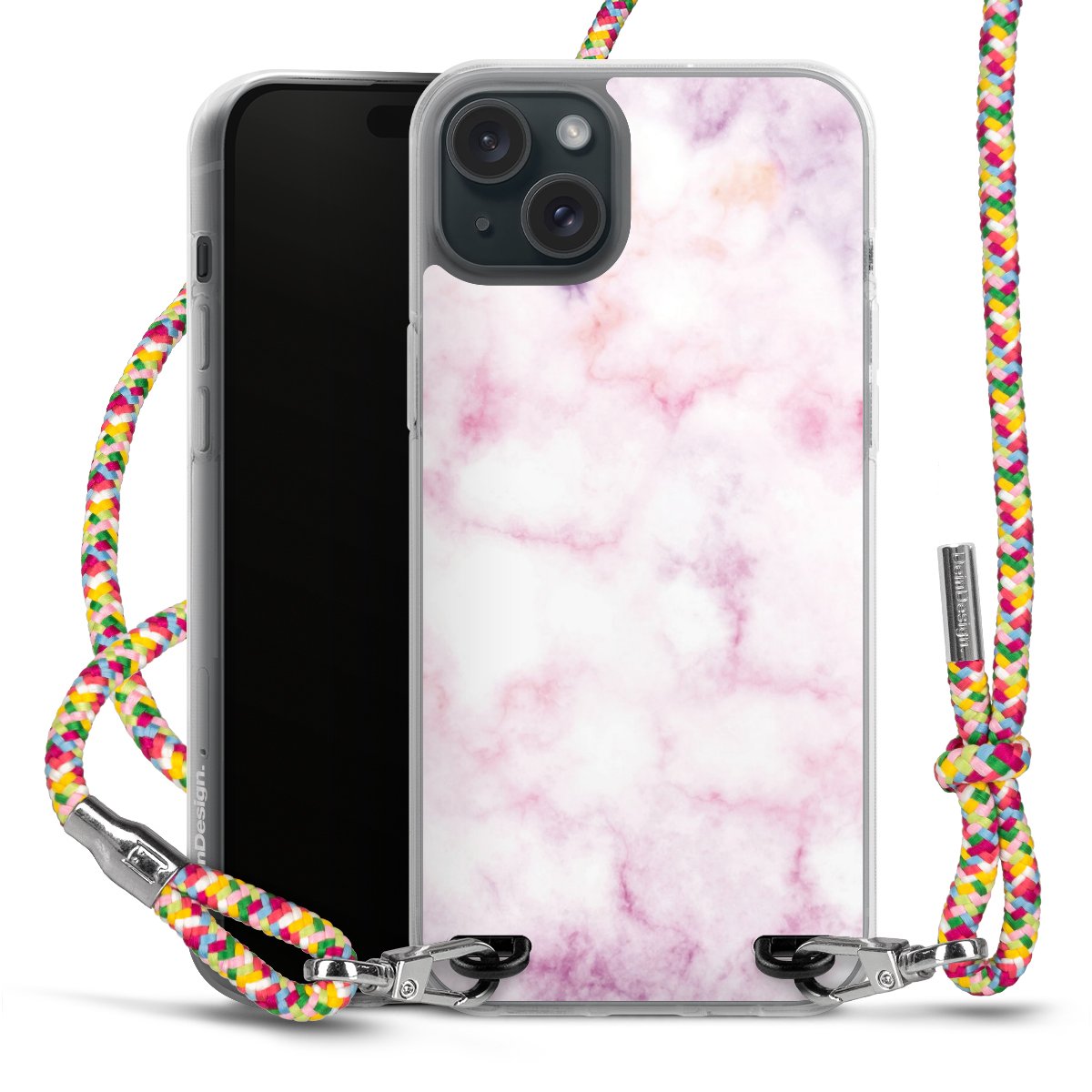The flexible case is made from a highquality TPU material (thermoplastic Polyurethan). Thanks to its longlasting and break resistant characterisitcs, the case is flexible yet consistent in form and has a great grip and feel. The textile strap made from Polyester gives a chic yet casual accent allowing you to carry your phone like a bag or necklace - a practical gadget perfect for your next adventure. The textile strap is about 1.70 meters long and the length can easily be adjusted through the knots. Our Carry Case is available in Colourful, Mint-Camouflage, Very-Berry, Sahara-Sand and Sparkling-Neon. The ends of the textile strap are covered with metallic end caps to protect them against fraying.