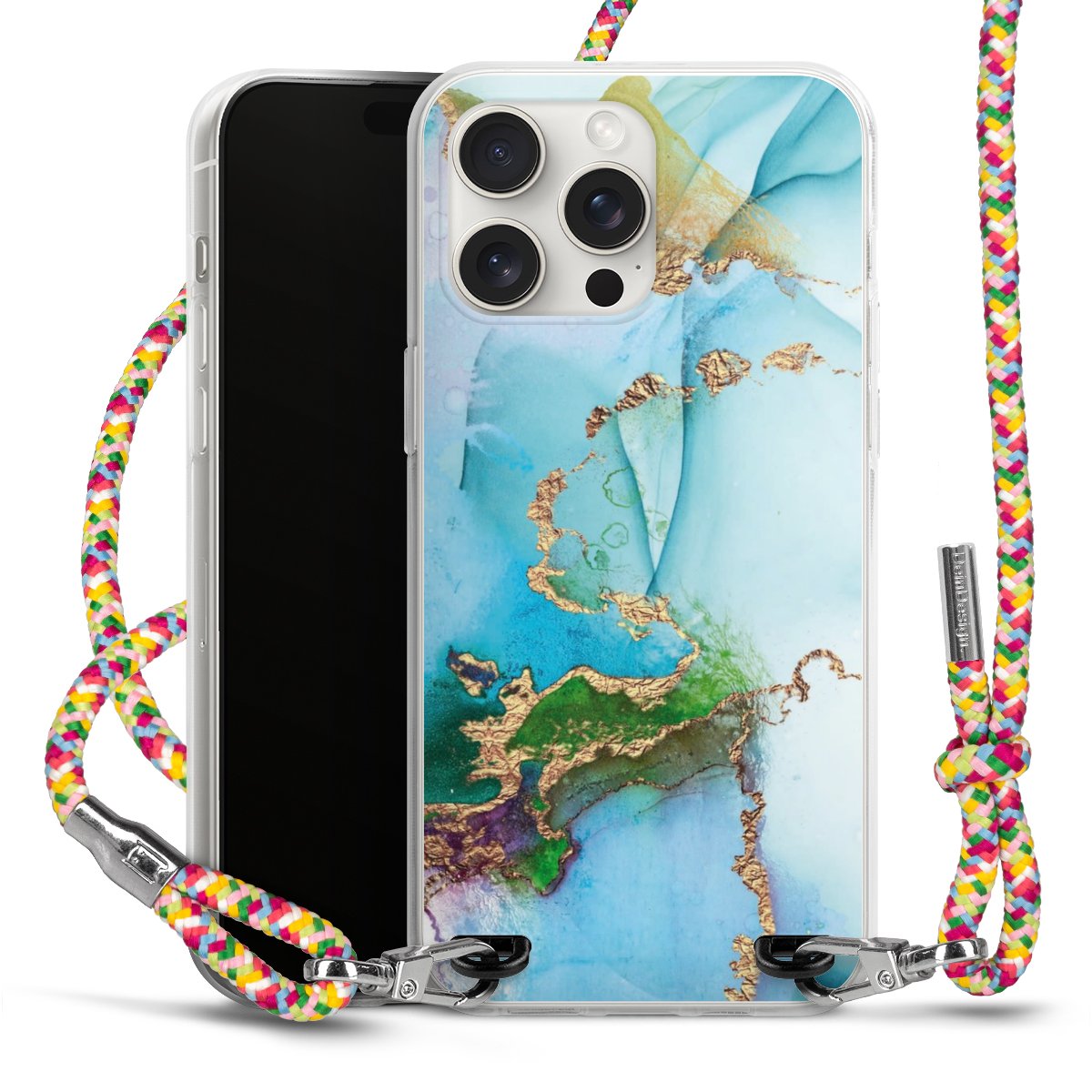The flexible case is made from a highquality TPU material (thermoplastic Polyurethan). Thanks to its longlasting and break resistant characterisitcs, the case is flexible yet consistent in form and has a great grip and feel. The textile strap made from Polyester gives a chic yet casual accent allowing you to carry your phone like a bag or necklace - a practical gadget perfect for your next adventure. The textile strap is about 1.70 meters long and the length can easily be adjusted through the knots. Our Carry Case is available in Colourful, Mint-Camouflage, Very-Berry, Sahara-Sand and Sparkling-Neon. The ends of the textile strap are covered with metallic end caps to protect them against fraying.
