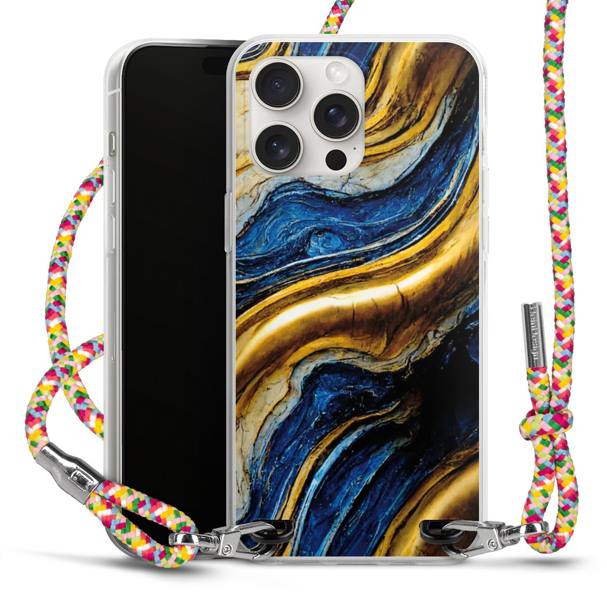 The flexible case is made from a highquality TPU material (thermoplastic Polyurethan). Thanks to its longlasting and break resistant characterisitcs, the case is flexible yet consistent in form and has a great grip and feel. The textile strap made from Polyester gives a chic yet casual accent allowing you to carry your phone like a bag or necklace - a practical gadget perfect for your next adventure. The textile strap is about 1.70 meters long and the length can easily be adjusted through the knots. Our Carry Case is available in Colourful, Mint-Camouflage, Very-Berry, Sahara-Sand and Sparkling-Neon. The ends of the textile strap are covered with metallic end caps to protect them against fraying.