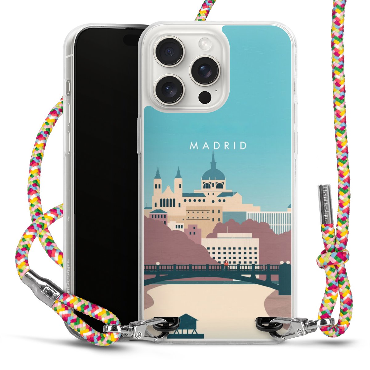 The flexible case is made from a highquality TPU material (thermoplastic Polyurethan). Thanks to its longlasting and break resistant characterisitcs, the case is flexible yet consistent in form and has a great grip and feel. The textile strap made from Polyester gives a chic yet casual accent allowing you to carry your phone like a bag or necklace - a practical gadget perfect for your next adventure. The textile strap is about 1.70 meters long and the length can easily be adjusted through the knots. Our Carry Case is available in Colourful, Mint-Camouflage, Very-Berry, Sahara-Sand and Sparkling-Neon. The ends of the textile strap are covered with metallic end caps to protect them against fraying.