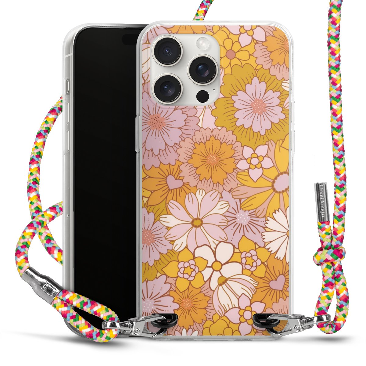 The flexible case is made from a highquality TPU material (thermoplastic Polyurethan). Thanks to its longlasting and break resistant characterisitcs, the case is flexible yet consistent in form and has a great grip and feel. The textile strap made from Polyester gives a chic yet casual accent allowing you to carry your phone like a bag or necklace - a practical gadget perfect for your next adventure. The textile strap is about 1.70 meters long and the length can easily be adjusted through the knots. Our Carry Case is available in Colourful, Mint-Camouflage, Very-Berry, Sahara-Sand and Sparkling-Neon. The ends of the textile strap are covered with metallic end caps to protect them against fraying.