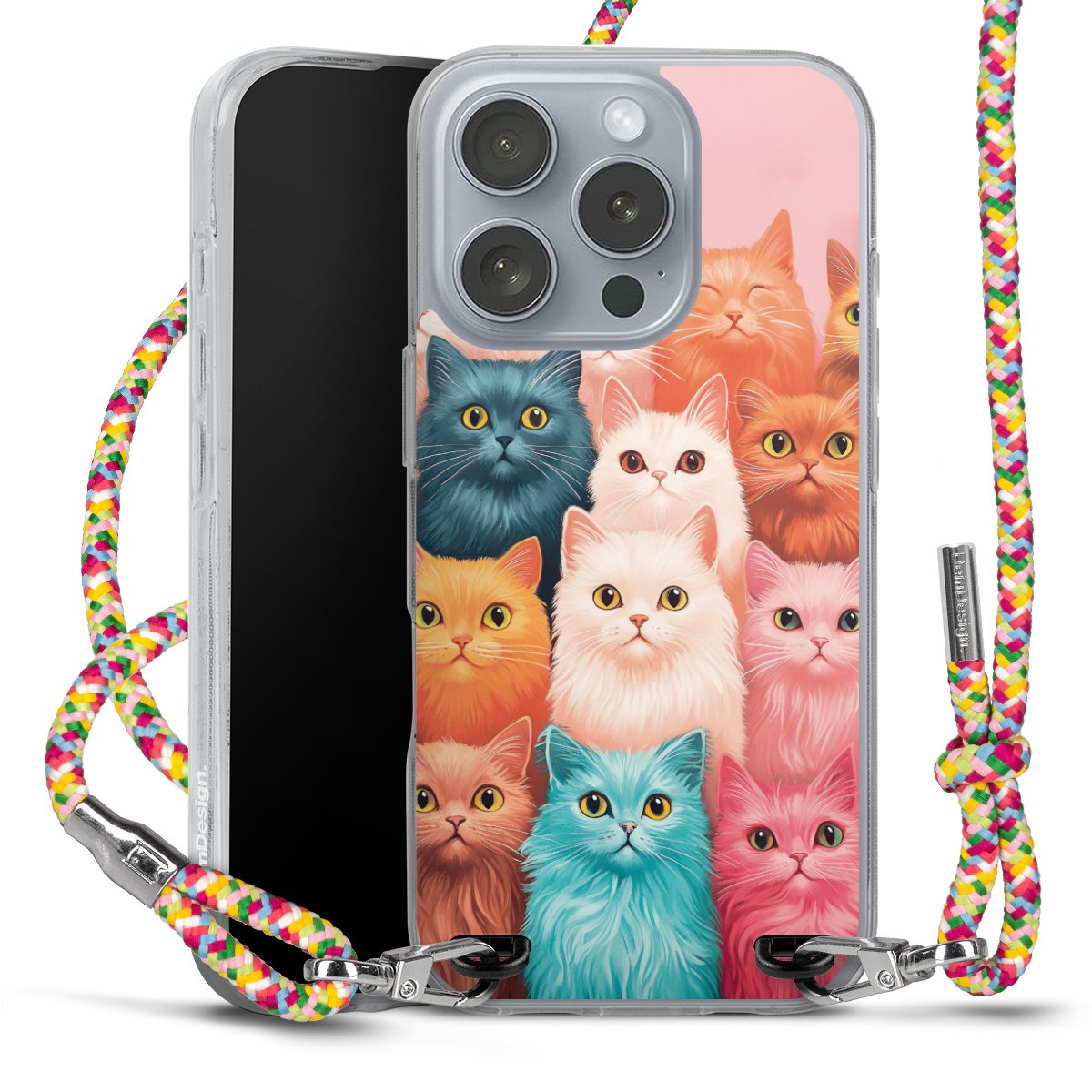 The flexible case is made from a highquality TPU material (thermoplastic Polyurethan). Thanks to its longlasting and break resistant characterisitcs, the case is flexible yet consistent in form and has a great grip and feel. The textile strap made from Polyester gives a chic yet casual accent allowing you to carry your phone like a bag or necklace - a practical gadget perfect for your next adventure. The textile strap is about 1.70 meters long and the length can easily be adjusted through the knots. Our Carry Case is available in Colourful, Mint-Camouflage, Very-Berry, Sahara-Sand and Sparkling-Neon. The ends of the textile strap are covered with metallic end caps to protect them against fraying.