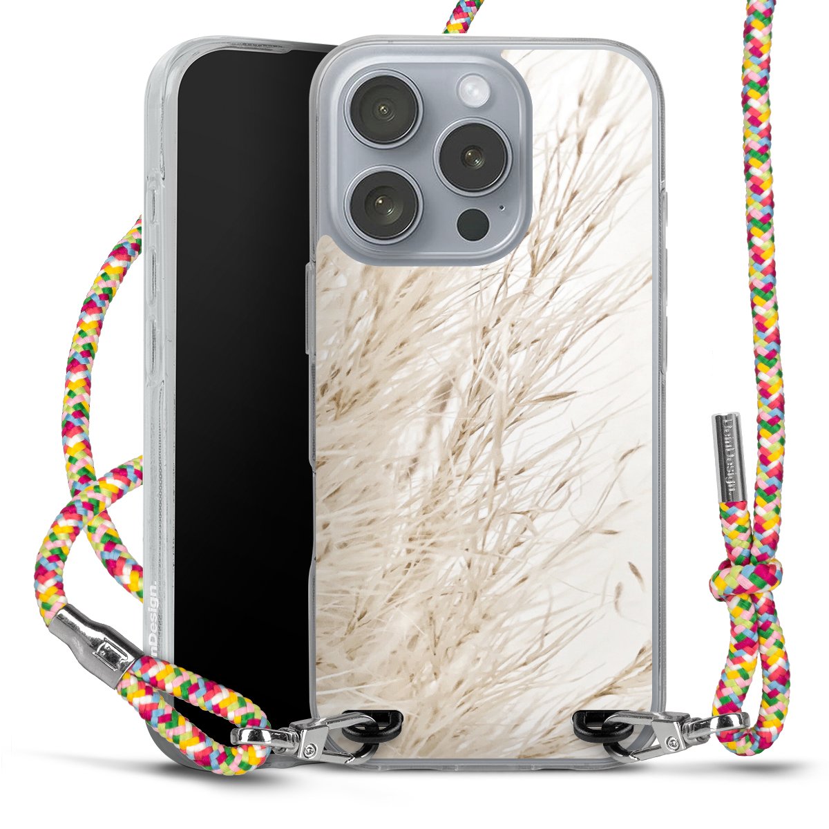 The flexible case is made from a highquality TPU material (thermoplastic Polyurethan). Thanks to its longlasting and break resistant characterisitcs, the case is flexible yet consistent in form and has a great grip and feel. The textile strap made from Polyester gives a chic yet casual accent allowing you to carry your phone like a bag or necklace - a practical gadget perfect for your next adventure. The textile strap is about 1.70 meters long and the length can easily be adjusted through the knots. Our Carry Case is available in Colourful, Mint-Camouflage, Very-Berry, Sahara-Sand and Sparkling-Neon. The ends of the textile strap are covered with metallic end caps to protect them against fraying.