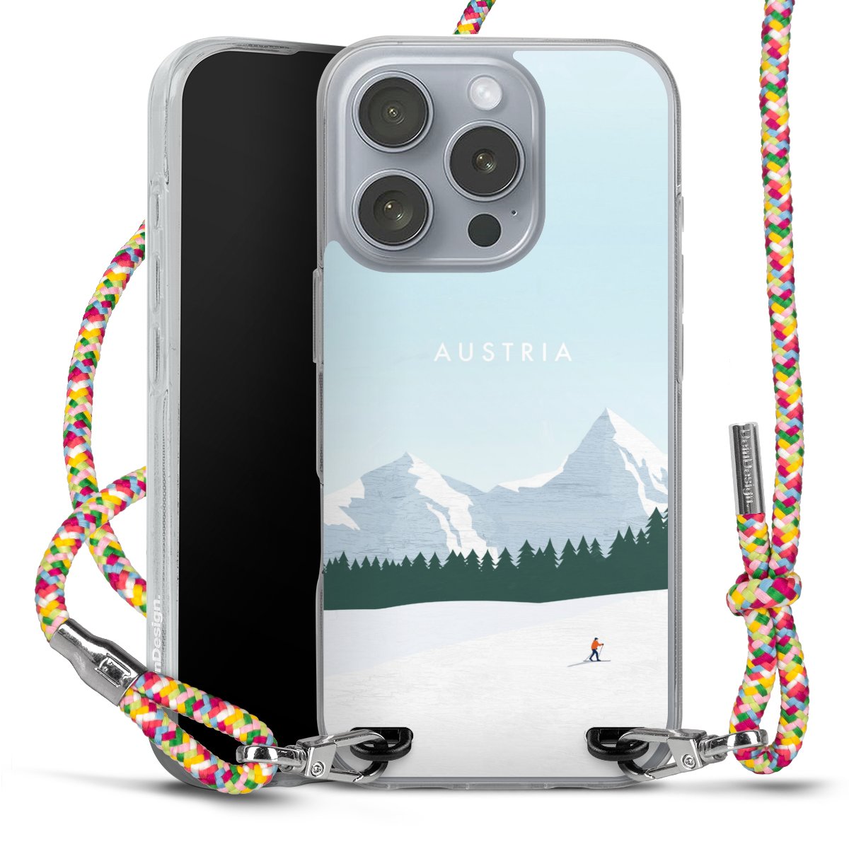 The flexible case is made from a highquality TPU material (thermoplastic Polyurethan). Thanks to its longlasting and break resistant characterisitcs, the case is flexible yet consistent in form and has a great grip and feel. The textile strap made from Polyester gives a chic yet casual accent allowing you to carry your phone like a bag or necklace - a practical gadget perfect for your next adventure. The textile strap is about 1.70 meters long and the length can easily be adjusted through the knots. Our Carry Case is available in Colourful, Mint-Camouflage, Very-Berry, Sahara-Sand and Sparkling-Neon. The ends of the textile strap are covered with metallic end caps to protect them against fraying.
