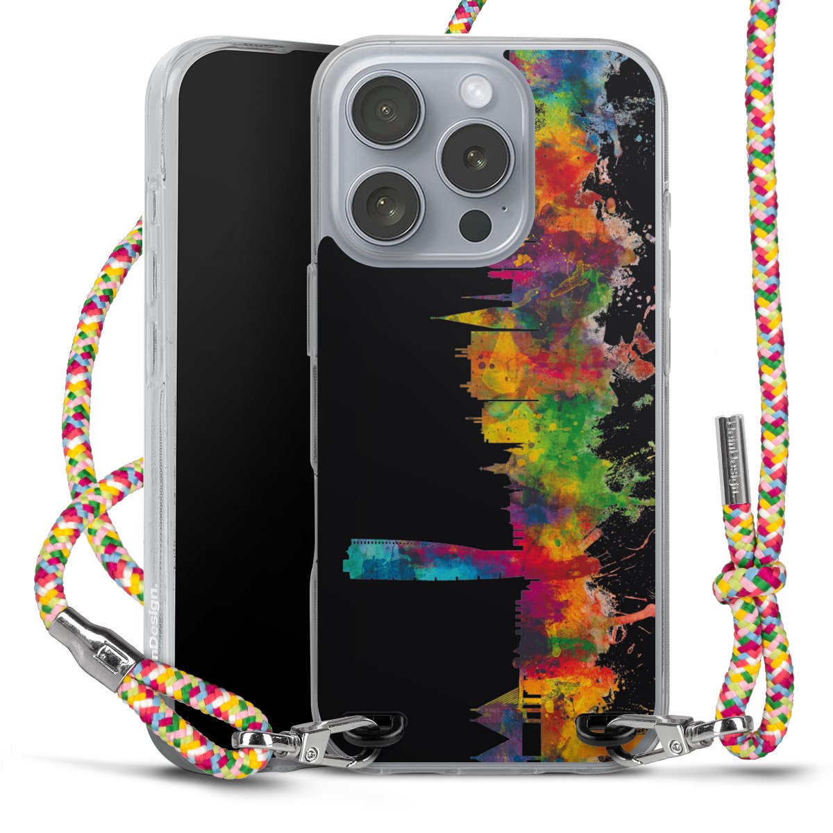 The flexible case is made from a highquality TPU material (thermoplastic Polyurethan). Thanks to its longlasting and break resistant characterisitcs, the case is flexible yet consistent in form and has a great grip and feel. The textile strap made from Polyester gives a chic yet casual accent allowing you to carry your phone like a bag or necklace - a practical gadget perfect for your next adventure. The textile strap is about 1.70 meters long and the length can easily be adjusted through the knots. Our Carry Case is available in Colourful, Mint-Camouflage, Very-Berry, Sahara-Sand and Sparkling-Neon. The ends of the textile strap are covered with metallic end caps to protect them against fraying.