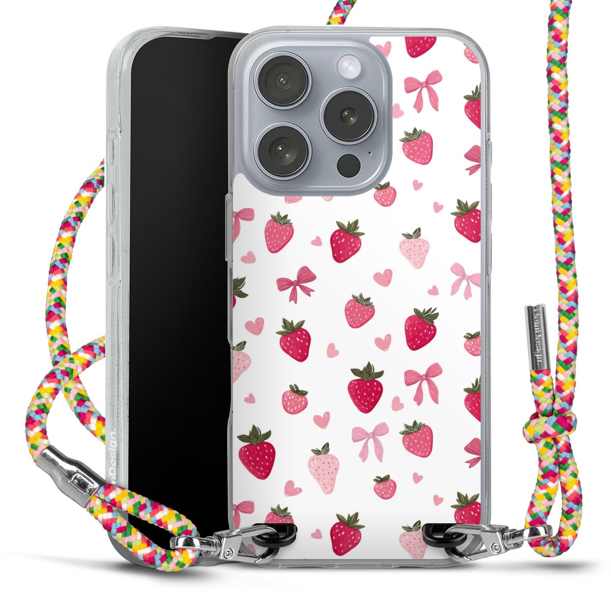 The flexible case is made from a highquality TPU material (thermoplastic Polyurethan). Thanks to its longlasting and break resistant characterisitcs, the case is flexible yet consistent in form and has a great grip and feel. The textile strap made from Polyester gives a chic yet casual accent allowing you to carry your phone like a bag or necklace - a practical gadget perfect for your next adventure. The textile strap is about 1.70 meters long and the length can easily be adjusted through the knots. Our Carry Case is available in Colourful, Mint-Camouflage, Very-Berry, Sahara-Sand and Sparkling-Neon. The ends of the textile strap are covered with metallic end caps to protect them against fraying.