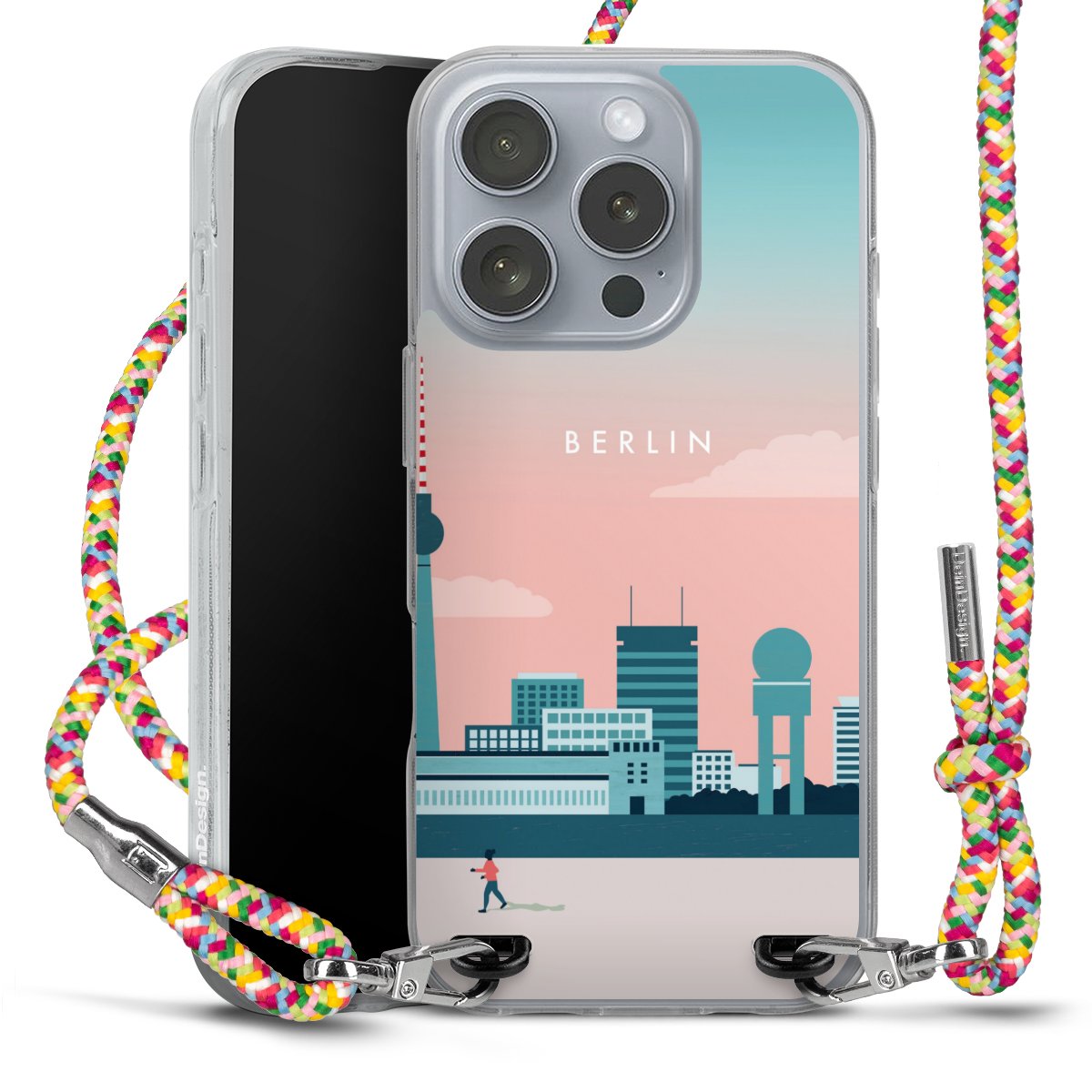 The flexible case is made from a highquality TPU material (thermoplastic Polyurethan). Thanks to its longlasting and break resistant characterisitcs, the case is flexible yet consistent in form and has a great grip and feel. The textile strap made from Polyester gives a chic yet casual accent allowing you to carry your phone like a bag or necklace - a practical gadget perfect for your next adventure. The textile strap is about 1.70 meters long and the length can easily be adjusted through the knots. Our Carry Case is available in Colourful, Mint-Camouflage, Very-Berry, Sahara-Sand and Sparkling-Neon. The ends of the textile strap are covered with metallic end caps to protect them against fraying.