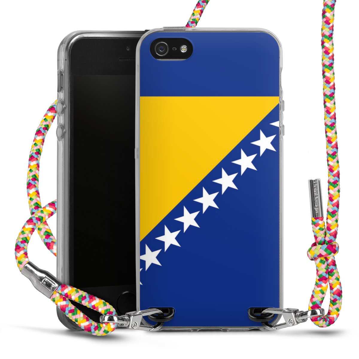 The flexible case is made from a highquality TPU material (thermoplastic Polyurethan). Thanks to its longlasting and break resistant characterisitcs, the case is flexible yet consistent in form and has a great grip and feel. The textile strap made from Polyester gives a chic yet casual accent allowing you to carry your phone like a bag or necklace - a practical gadget perfect for your next adventure. The textile strap is about 1.70 meters long and the length can easily be adjusted through the knots. Our Carry Case is available in Colourful, Mint-Camouflage, Very-Berry, Sahara-Sand and Sparkling-Neon. The ends of the textile strap are covered with metallic end caps to protect them against fraying.