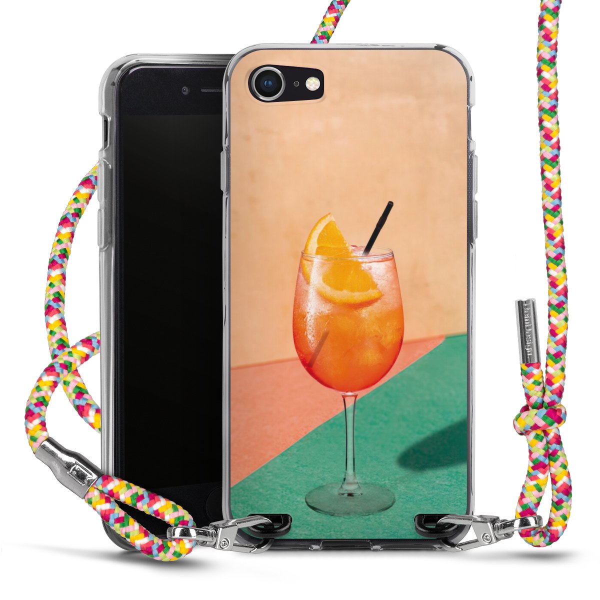 The flexible case is made from a highquality TPU material (thermoplastic Polyurethan). Thanks to its longlasting and break resistant characterisitcs, the case is flexible yet consistent in form and has a great grip and feel. The textile strap made from Polyester gives a chic yet casual accent allowing you to carry your phone like a bag or necklace - a practical gadget perfect for your next adventure. The textile strap is about 1.70 meters long and the length can easily be adjusted through the knots. Our Carry Case is available in Colourful, Mint-Camouflage, Very-Berry, Sahara-Sand and Sparkling-Neon. The ends of the textile strap are covered with metallic end caps to protect them against fraying.