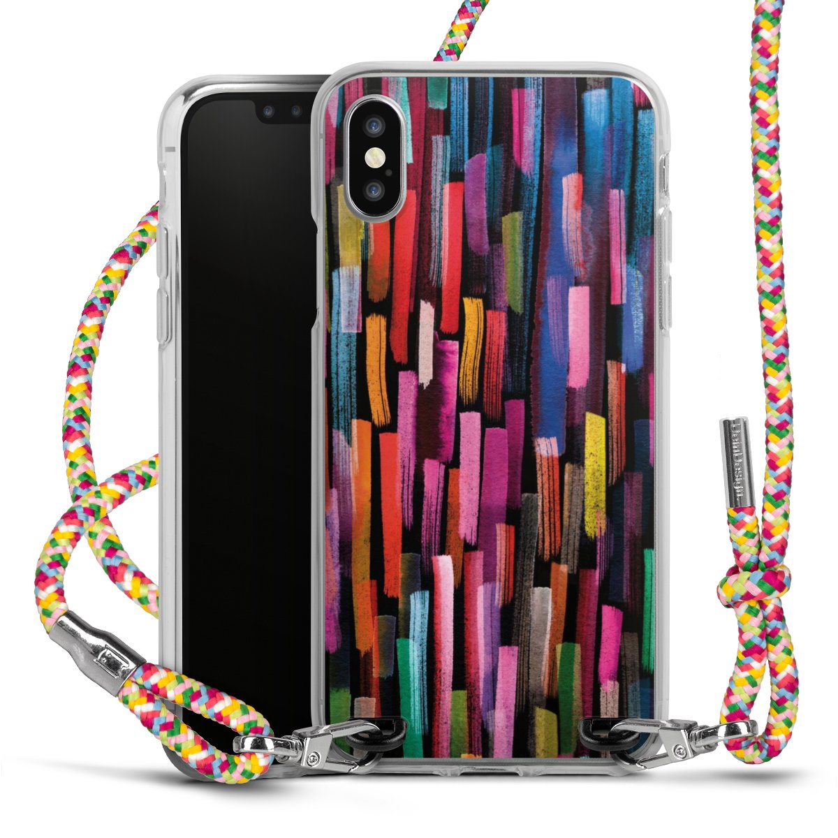The flexible case is made from a highquality TPU material (thermoplastic Polyurethan). Thanks to its longlasting and break resistant characterisitcs, the case is flexible yet consistent in form and has a great grip and feel. The textile strap made from Polyester gives a chic yet casual accent allowing you to carry your phone like a bag or necklace - a practical gadget perfect for your next adventure. The textile strap is about 1.70 meters long and the length can easily be adjusted through the knots. Our Carry Case is available in Colourful, Mint-Camouflage, Very-Berry, Sahara-Sand and Sparkling-Neon. The ends of the textile strap are covered with metallic end caps to protect them against fraying.